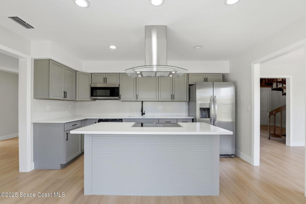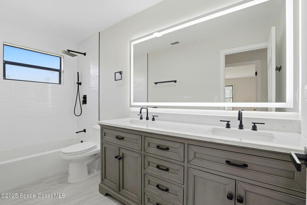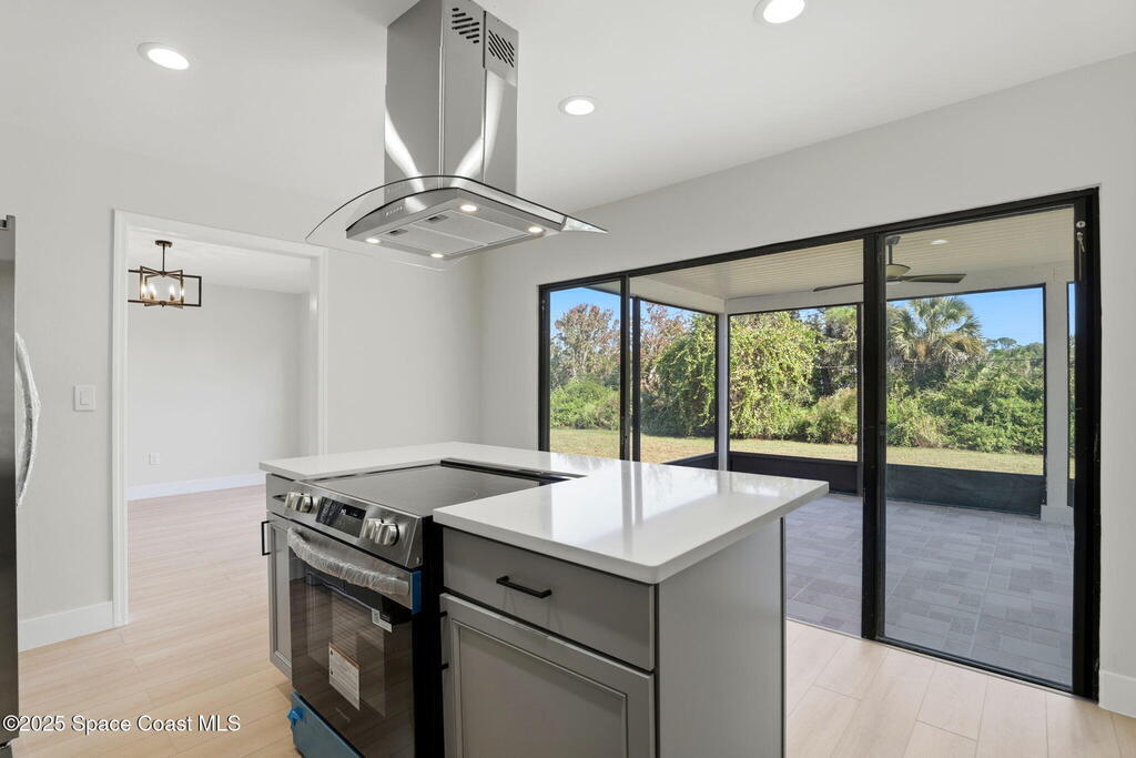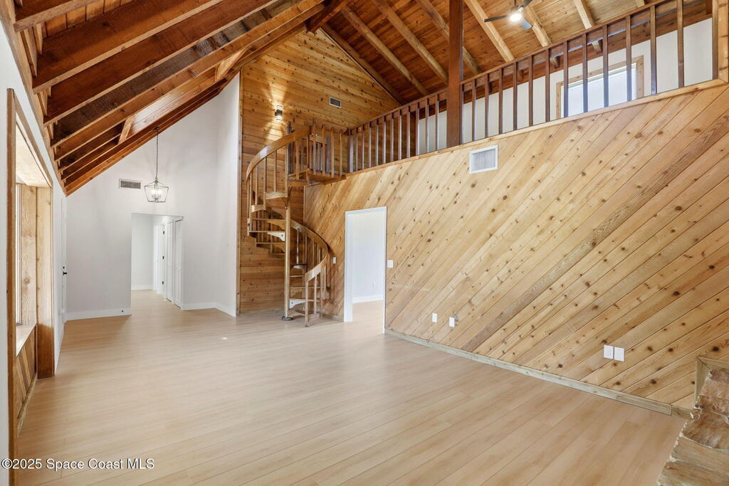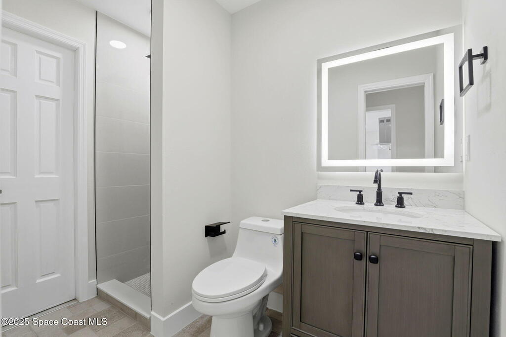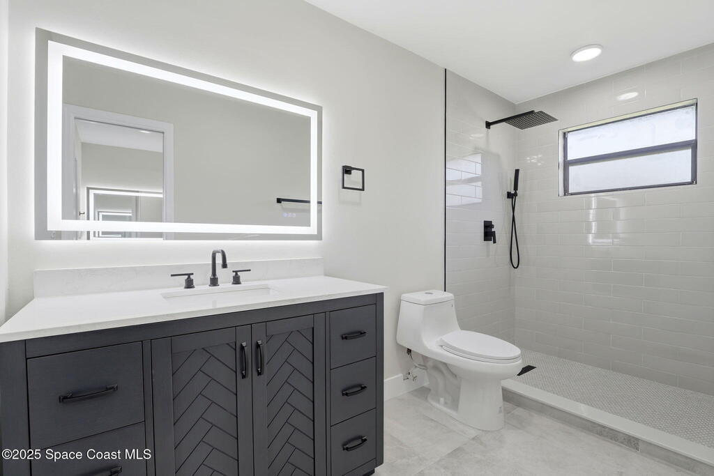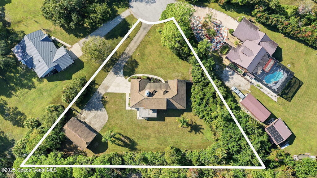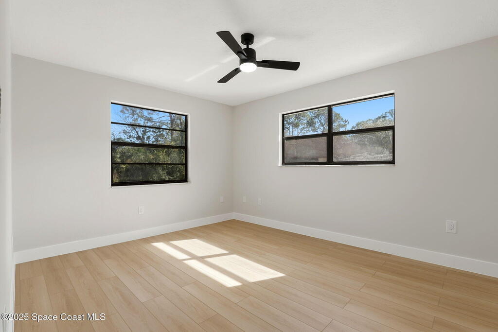 This fully renovated 4 bedroom, 3 bathroom home is located in a sought-after Cocoa neighborhood and sits on a spacious 1.05 acre lot. The property features beautiful curb appeal, manicured landscaping, a 2-car attached garage, and a detached garage perfect for extra parking, storage, or a workshop. Inside, you'll find brand new luxury vinyl flooring, modern light fixtures, and an open layout. The living room includes a stone-lined fireplace, and the updated kitchen offers stainless steel appliances and quartz countertops with a sliding glass door leading to the screened-in patio. The bedrooms have ceiling fans, large windows, and plenty of natural light. The primary bathroom features a renovated tile-lined shower and updated vanity. A bonus space upstairs is ideal for an office or extra living area. With no HOA and a large backyard perfect for gatherings, this home offers both space and convenience. Easy access to beaches, Port Canaveral, the Space Center, and Orlando nearby.