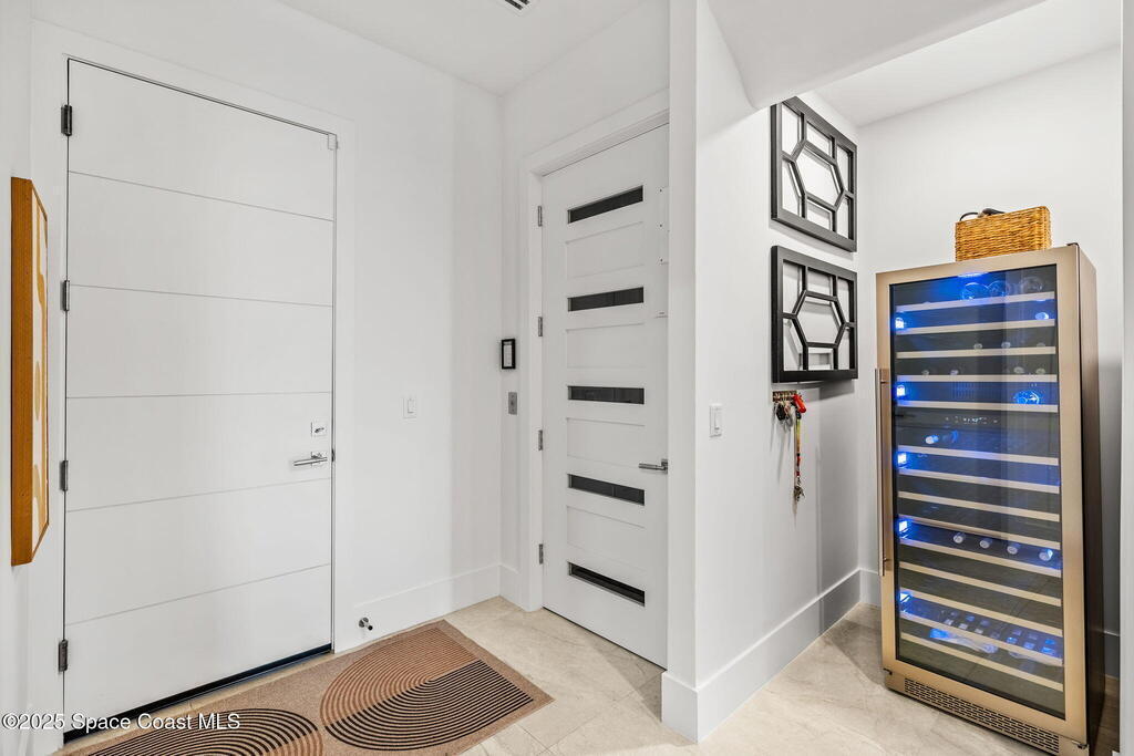 Experience a level of craftsmanship rarely seen on the market. Not a single expense has been spared by this international developer--every inch of this home reflects precision, intention, and luxury. Perched 20 feet above sea level and built like a fortress, this 2023 direct-riverfront residence delivers panoramic Indian River views and European-inspired elegance across 2,936 sq. ft., seamlessly connected by a private elevator to all three levels.Every design element is a statement piece: a sculptural marble-and-oak floating staircase, glass railings, sleek porcelain flooring, and meticulously curated finishes that redefine modern sophistication. The Euro-style kitchen features premium appliances and custom cabinetry designed not just for functionality, but for elevated living and entertaining.Set on a private 0.12-acre riverfront parcel, the estate includes a resort-style pool with waterfall and a 366-ft private dock outfitted with both boat and jet ski lifts.