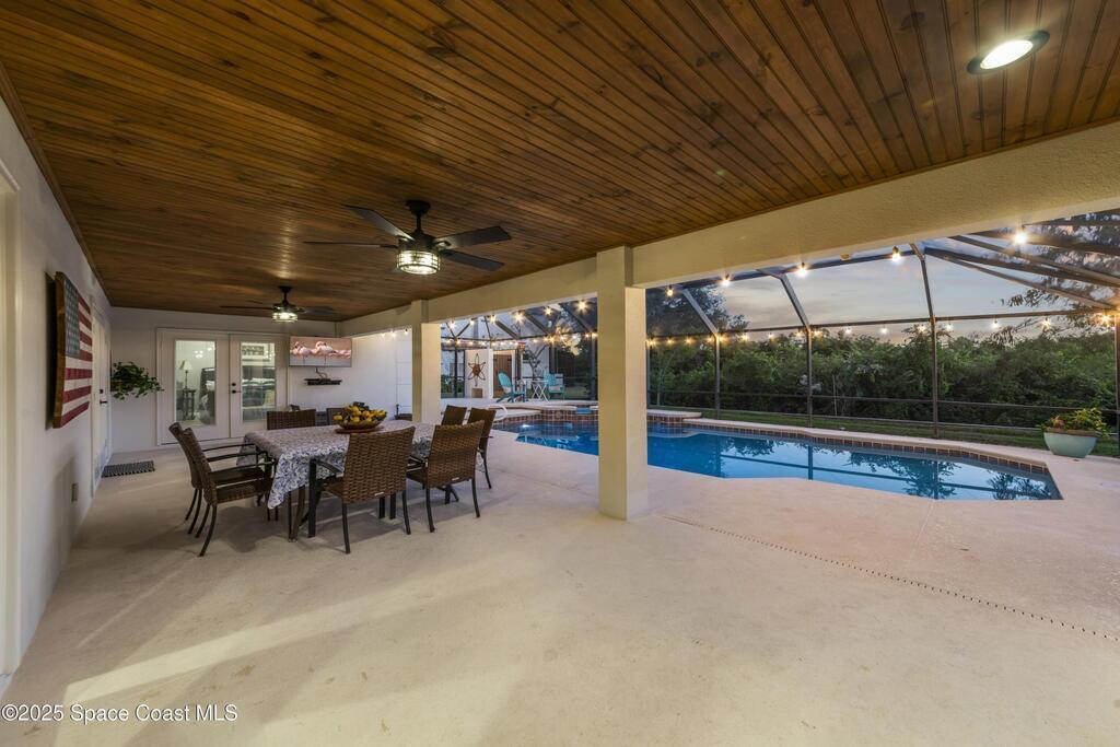 Beautiful pool home in the gated community of Casabella! Step inside the grand two-story entrance and enjoy immediate views of the sparkling pool. The recently updated, open-concept kitchen overlooks the dining area and living room, featuring a spacious island, built-in china cabinets, quartz countertops, and a pantry.The inviting family room offers direct access to the expansive screened pool area, complete with a summer kitchen and outdoor shower perfect for entertaining. A convenient half bath is located downstairs.The primary suite is also on the main floor, with private access to the pool and a completely updated spa-style bathroom. Enjoy a luxurious steam shower and an exceptional walk-in dressing room equipped with a wine fridge and bar. A large bedroom off the entry with French doors makes an ideal study or flex room. Upstairs you'll find three generous bedrooms. Two share a Jack-and-Jill bath, while the third features its own bath with shower.