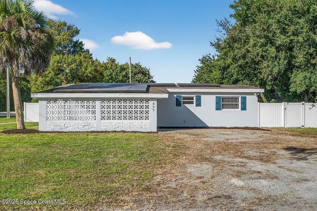 Its all done for you at this lovely, refreshed 3/2 home! Enjoy peace of mind w/ the solid CBS construction, 2021 roof, 2022 whole house solar panels (totally paid off- HELLO monthly electric savings $$!), 2020 AC & updates around every turn. Enjoy the breezy carport, covered patio & fenced yard that's nearly a third of an acre w/ a storage shed & playhouse! Fresh paint inside/outside + throughout there is new: flooring, baseboards, lighting, fans & blinds. The kitchen is thoughtfully complete w/ SS appliances, granite, subway tile, a pantry & even lazy susan cupboard! FHA seasoning date 12/30.