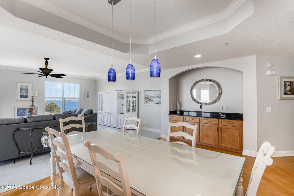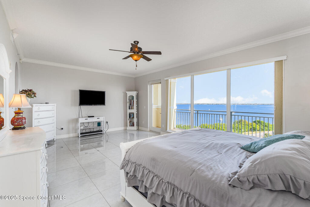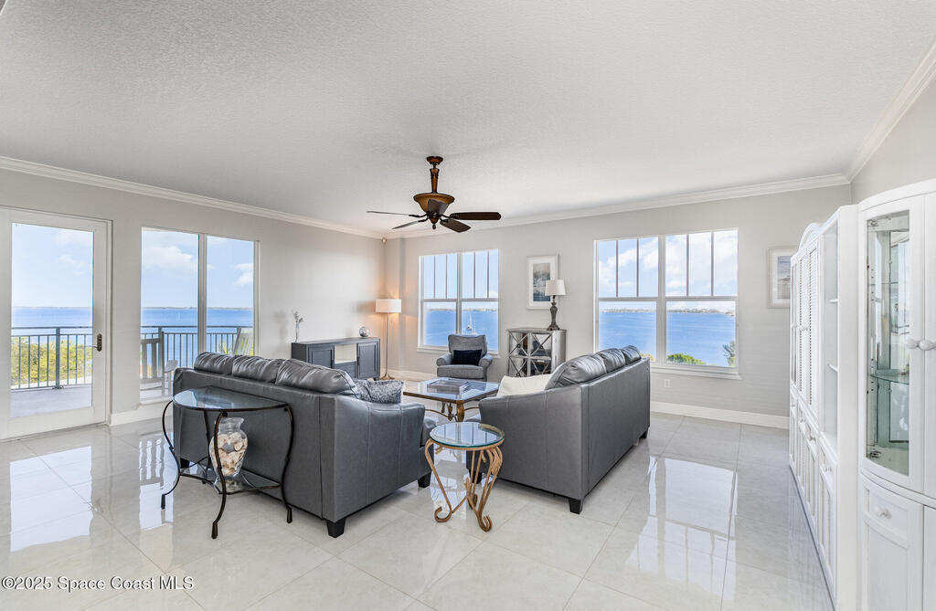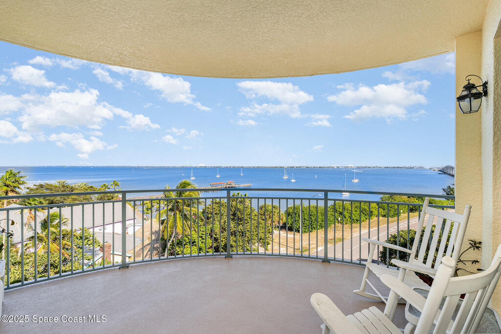 Welcome to the Pineapple House! Spectacular, PANORAMIC water views from almost every room in this stunning, 6th floor END unit, just a few minutes drive to the beach. Multiple balconies to catch the sunrise, a rocket launch, or enjoy an evening beverage. 3 bdms, 3 full baths. Bright, open and airy floorplan. 2281 sq ft. Meticulously maintained, updated & tranquil. Impact windows. Close to all the fun of downtown, and once inside, you are in your own, peaceful & private oasis. Private community HEATED pool/spa, inviting fitness room, clubhouse to host gatherings. All amenities and parking located inside the building. 2 parking spots. Extra storage unit. The building itself is beautifully maintained & gives you a sense of elegance. Located in the heart of the Eau Gallie Arts District, moments away from restaurants, art gallery, wine & Kava bars, antiques, yoga studio, library, breweries, shopping, & a farmers market every Saturday. 3 min drive to the beach, 1 hr to Orlando airp