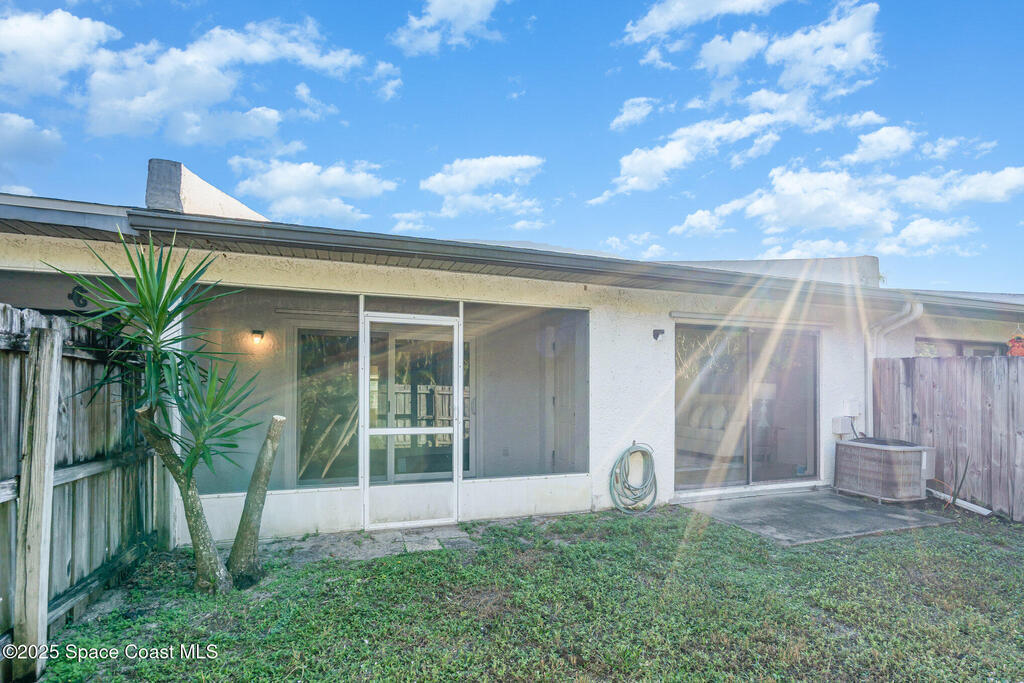 This 2-bedroom, 2-bathroom, single-story townhome offers the perfect opportunity to enjoy a relaxed coastal lifestyle. Located close to shopping, restaurants, and entertainment, you can watch rocket launches from the beach, stroll to local restaurants or explore the nearby Eau Gallie Arts District, just across the Indian River. The primary bedroom features a hurricane-impact slider leading to a screened-in porch --the perfect spot to unwind and enjoy ocean breezes. Additional highlights include a privacy fenced backyard, one-car garage with a hurricane-rated garage door, and low HOA fees. While the home is in original condition and ready for updates, its unbeatable location less than a mile from the beach and strong potential make it a fantastic investment or renovation opportunity. Roof (2018), HVAC (2012), and Water Heater (2022).