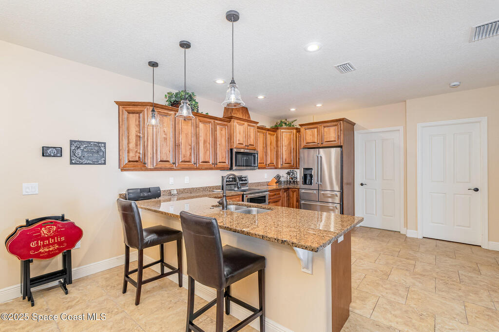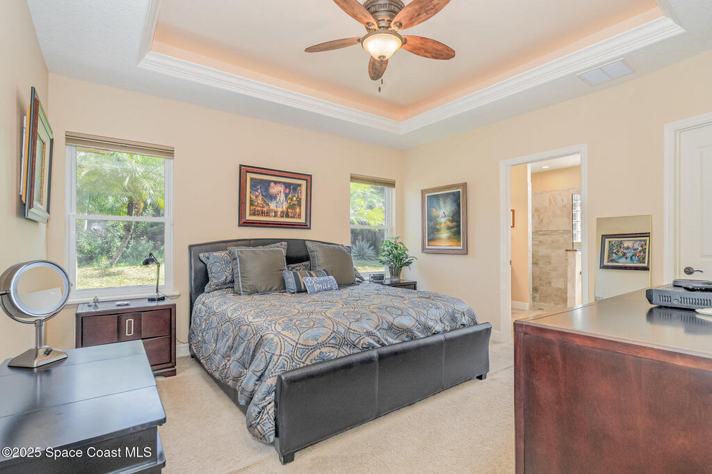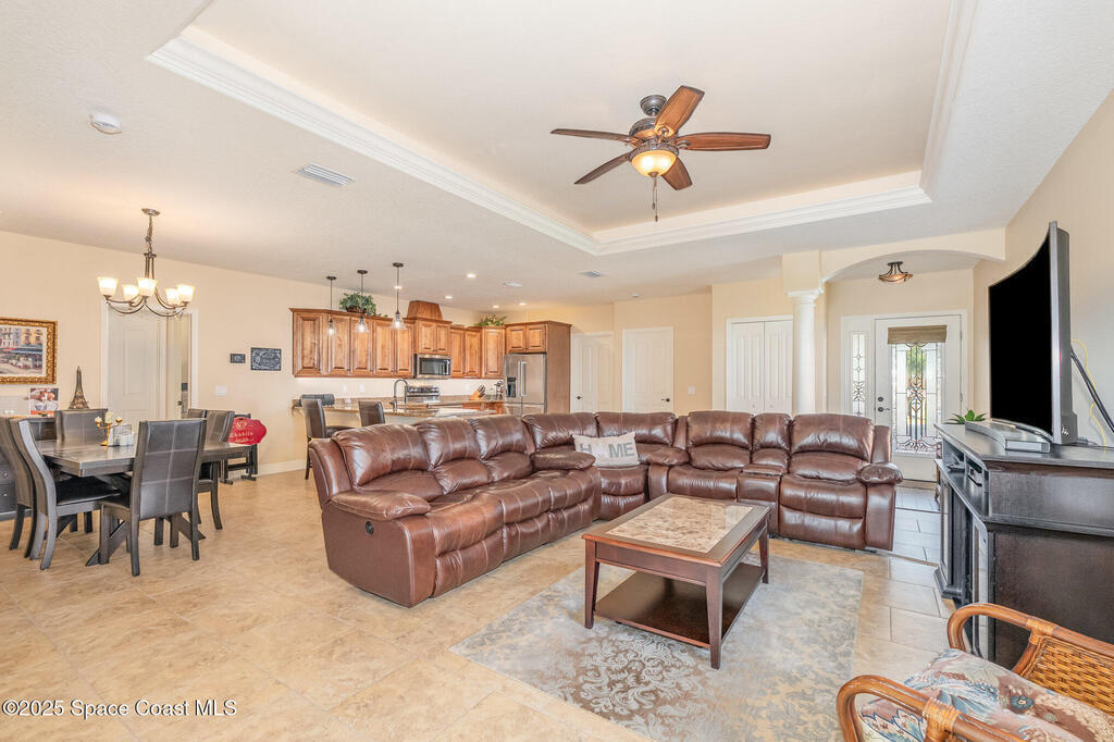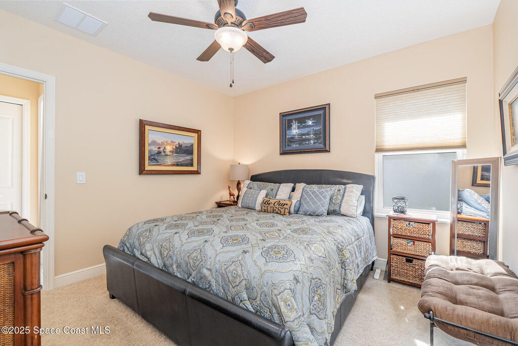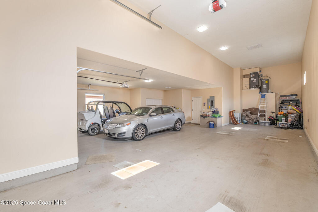 Discover refined comfort in this poured-concrete home featuring full impact glass and doors for unmatched durability and peace of mind. 53' RV Port! This beautifully maintained 3-bedroom, 2-bath residence is surrounded by mature landscaping, offering exceptional privacy from the moment you arrive. A paver driveway welcomes you to an elegant interior highlighted by a newer suite of KitchenAid appliances and a spacious layout designed for effortless living.Relax on the back patio and enjoy stunning views of rocket launches right from home. Additional upgrades include a 2023 A/C replacement for year-round efficiency. As an added bonus, a 2016 Gem Car is included with a full-price offer--perfect for enjoying the Hidden Lakes lifestyle.A rare opportunity to own a true gem in one of the area's most desirable communities.
