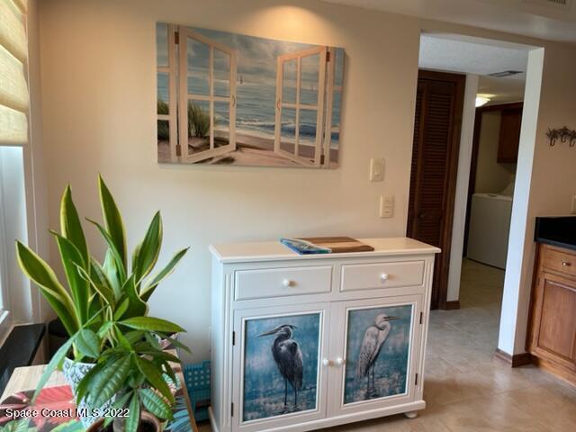 Available now for short or long term lease. If short term rent is $3500. Long term $3000. You will love this beautifully furnished, updated coastal condo that has community heated pool to enjoy. Close to Ocean Ave. and located 2 minute walk to beach where you can watch rocket launches. One car garage space plus storage closet. Stunning kitchen with granite countertops, S/S appliances and custom cabinetry plus breakfast bar made of granite has room for stools,. Both baths updated with custom cabinetry and granite tops and stunning shower remodels with seamless glass. Primary bath has double sinks too and walk in closet. ALL TILE FLOORS!Water/sewer, cable/Wi-Fi, yard/pool maintenance included in rent Tenant pays only electric and tourist tax if applicable on lease shorter then 180 days.