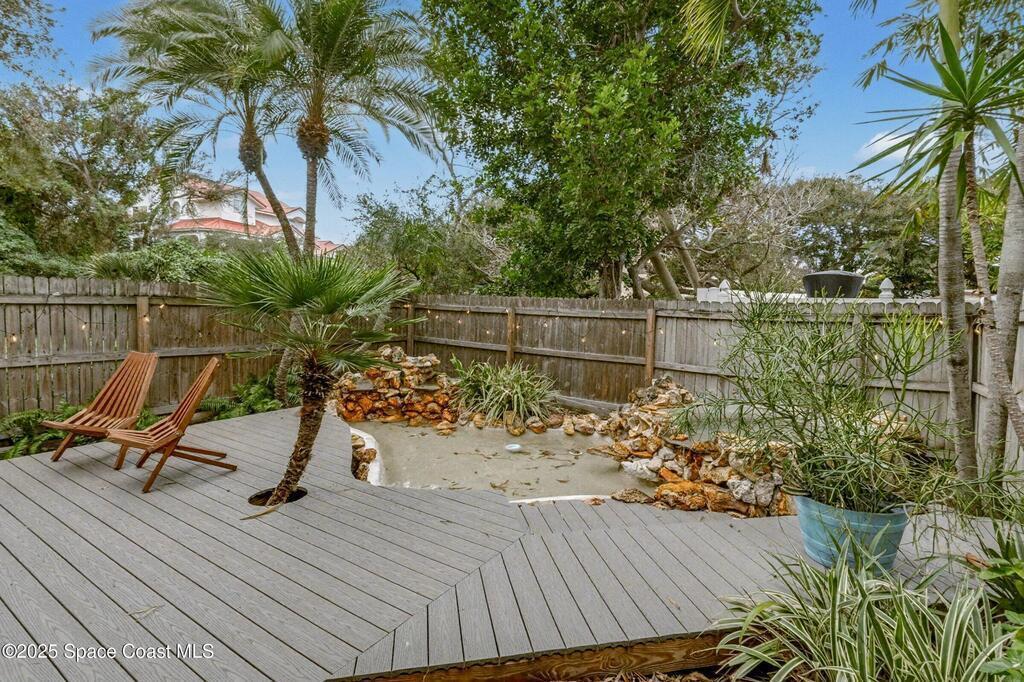 Here is the opportunity you have been waiting for! A fantastic piece of beachside property located in desirable south Cocoa Beach and just minutes walk to the beach. With no HOA fees to worry about, this two bedroom 2.5 bath updated townhome is the perfect place to be your dream home, to be used as a second home, or as an investment property. This townhouse has been very tastefully updated to reflect the beachside feel. Over $70K of updates include a kitchen remodel with new cabinets and quartz countertops, all three bathrooms updated with new tile and vanities, new flooring throughout, and updated tropical landscaping with rock beds for easy maintenance. The rear of the property features a relaxing deck and water feature including a rock waterfall and an inviting whirlpool (not heated). This is the perfect place to hang out after a long day at work or a day spent at the beach. Do not miss this opportunity to experience Florida living at its finest!