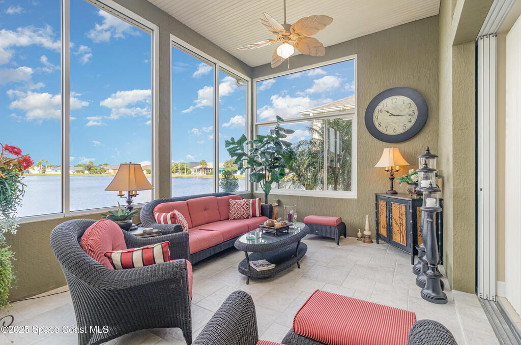 Welcome home to this beautifully furnished gem in the exclusive Hidden Lakes community of The Great Outdoors. This tastefully decorated residence showcases tray ceilings, crown molding, recessed and chandelier lighting, and exceptional attention to detail throughout. The chef's kitchen is a dream, offering abundant cabinetry, granite countertops, and a cozy breakfast nook.Enjoy lake views from the spacious Florida room, or unwind by the gas fireplace. An indoor laundry room with additional storage adds everyday convenience. The home also features an oversized two-car garage and an impressive 50' x 14' RV port.This home is ready for you just bring your golf clubs and your belongings and make this home yours today. The Great Outdoors offers a vibrant lifestyle with an abundance of community activities, including golf, pickleball, tennis, swimming, nature trails, fitness facilities, social clubs, and year-round events. Come experience comfort, style, and resort living at its finest