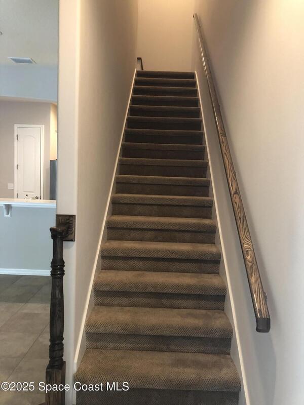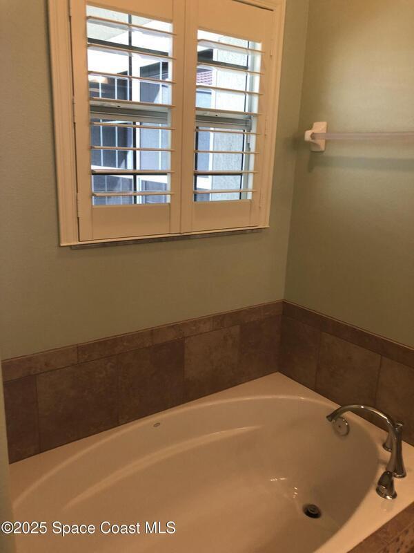 Lovely, crisp, clean, pet-friendly, centrally-located townhome in Stadium Villas, Viera. Screened interior courtyard brings the outdoors in while offering complete privacy--sure to be a favorite spot for you and your friends and pets. Two balconies and hardwood floors upstairs. Tile flooring downstairs. The only carpet is on the stairway. Master suite and laundry upstairs. Light and bright, high ceilings, neutral finishes, stainless appliances, gas range, tankless water heater, impact windows, plantation shutters. Versatile flex space perfect for home office, dining area or sunroom. Two car garage and plenty of street parking in front. Community pool and dog park. Close to Publix, bank, dentist, vet, Starbucks, many restaurants and shops. Easy access to 95, schools, the Avenues, medical and government center. You will love the maintenance-free Stadium Villas lifestyle.