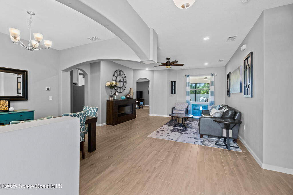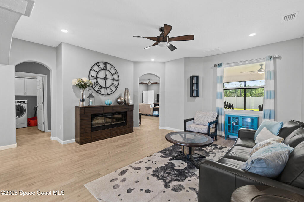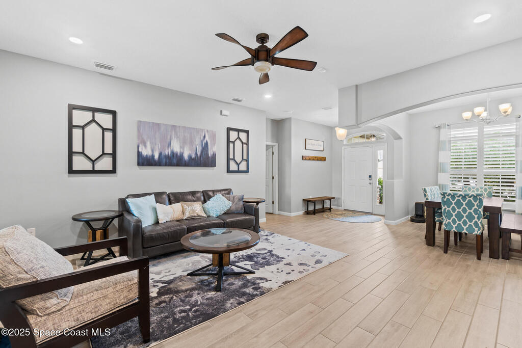 This beautiful 5BR/4BA home in the gated Sanctuary at SAWGRASS LAKES backs up to a protected nature preserve with an active eagle's nest. Inside, you'll find over $36K in builder upgrades. Built in 2018 and lovingly maintained by the original owners, this spacious 3,357 SQFT Elm Royale floor plan includes a 3-car garage, upgraded wood-look tile, Level 2 white shaker cabinets, quartz countertops, under-cabinet lighting, French doors, and a screened porch overlooking the preserve. 1st floor has spacious kitchen with large center island and bar-height slab, guest suite plus large upstairs loft, large bedroom (or office) full bathroom, office nook & Bonus Room. Enjoy resort-style amenities--huge beach entry resort community pool, waterslide, clubhouse, fitness center, and playgrounds and community events--all just a short walk or bike ride away. Located near top-rated schools, shopping and dining, this home blends luxury, space, and Florida nature living at its best.