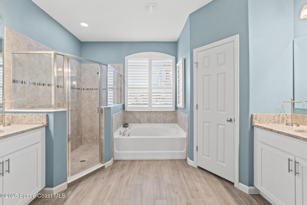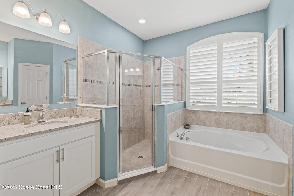 Interior Features: Breakfast Bar, Breakfast Nook, Ceiling Fan(s), His and Hers Closets, Pantry, Primary Bathroom -Tub with Separate Shower, Primary Downstairs, Split Bedrooms and Walk-In Closet(s)