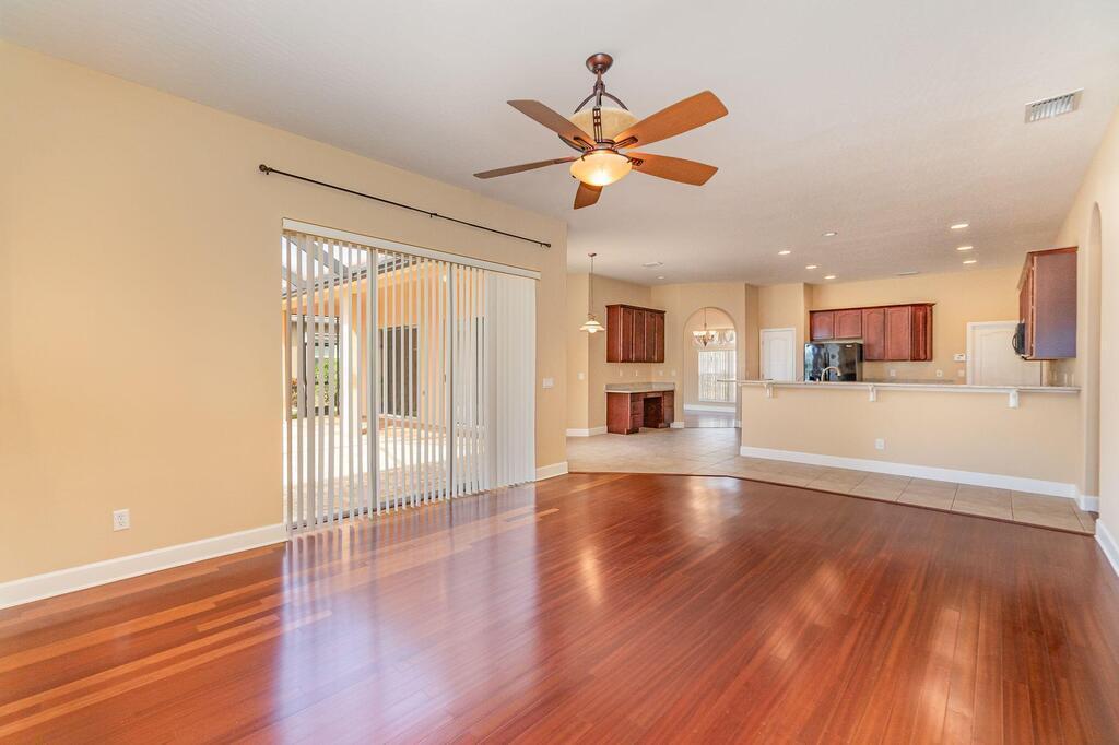 Stunning 4 bedroom, 3 bath, 1 story home with 3 car garage! Formal living and dining rooms. Spacious family room with built-in entertainment center and slider to screened patio.. Spacious center island kitchen with breakfast nook, pantry, breakfast bar, granite counter tops & wood cabinetry. Spacious primary bedroom with his/her closets & slider overlooking screened patio. Laundry room with utility sink & storage cabinetry. Huge, screened brick paver back patio overlooks the lake! Gated Oceanside Village Community with Community pool & Club House. Only a few minutes to the beach, shopping, restaurants, medical, Cruise terminals and less than an hour to Orlando area attractions. Standard lawn service included in rent. Renters Insurance Required