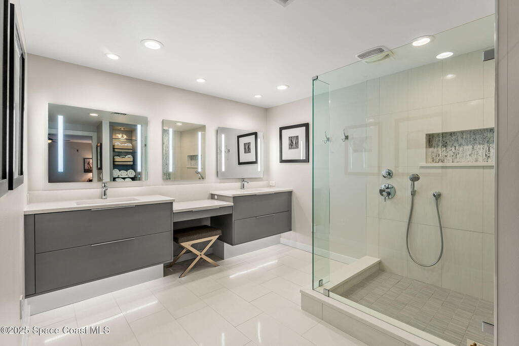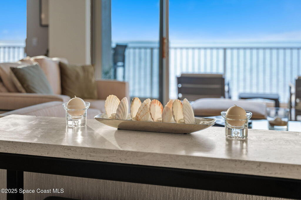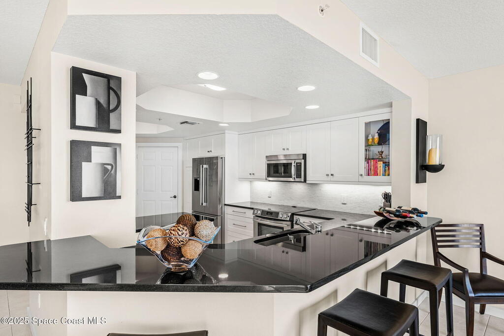 WIDE, OPEN living spaces and unforgettable sunset views define this TOP-FLOOR residence at Solana on the River. This RARE extra-wide three-bedroom, three-bath floor plan delivers an expansive, airy feel the moment you enter, with 9-foot ceilings, 8-foot sliders, and walls of riverfront glass drawing your eye straight to the water.Thoughtful upgrades continue throughout the home, including contemporary ceiling fans and remote-controlled shades on the living and dining room sliders -- offering comfort, convenience, and effortless control of light and privacy.The beautifully updated kitchen features polished black quartz countertops, JennAir and Bosch stainless appliances, a built-in wine cooler, updated shaker-style cabinetry, and excellent flow into the dining and living areas. Plush carpeting runs throughout (except for tiled spaces), bringing warmth and comfort to the residence.