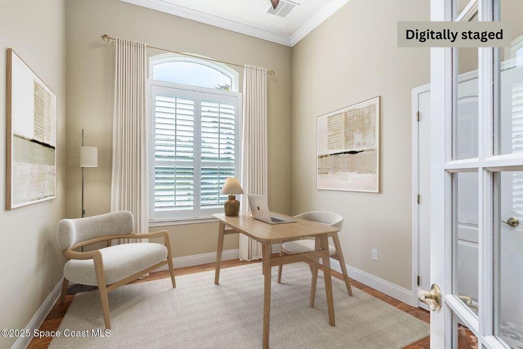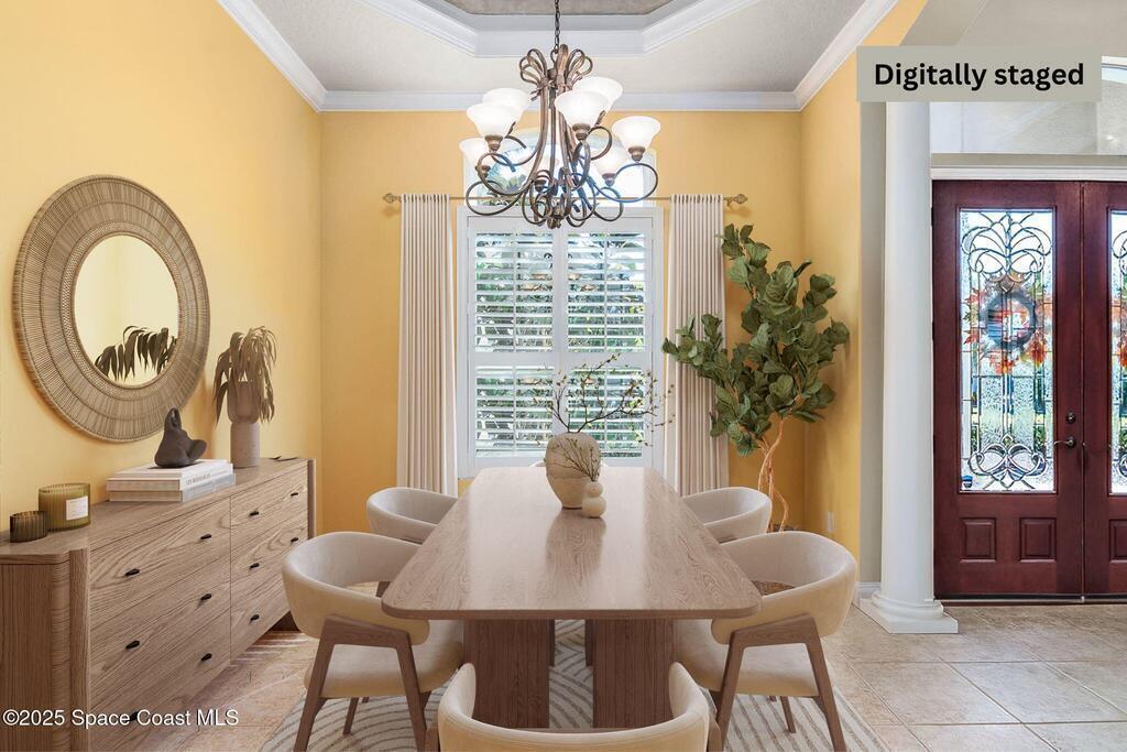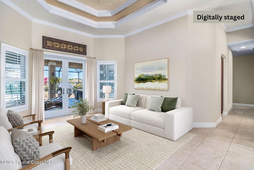 Immaculate pool home awaits in the prestigious Casabella gated community, with a low HOA, zoned for A+ schools & just 7 minutes from the beach. A paver driveway & $15k in lighted landscaping welcome you. Enter to a clear view of the pool & lake. This home offers formal living & dining areas, high ceilings, large bdrms & a family room with/ gas fireplace. The kitchen features wood cabinets, an integrated hood, & a breakfast bar. The primary bdrm is a quiet retreat w/ dual closets, a large walk-in shower, & a soaking tub. Enjoy the convenience of plantation shutters throughout, new Andersen windows & doors, hurricane-grade front windows, & new accordion/remote-controlled shutters. The outdoor space includes a 2-year-old pool cage, a new pool motor, pump, & heater, plus a retractable awning w/ LED lights. At night, enjoy the lit lake fountain. The oversized 2-car garage is a spacious 750sqft space. Close to shopping & dining. Embrace the opportunity to make this home yours.