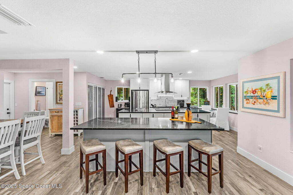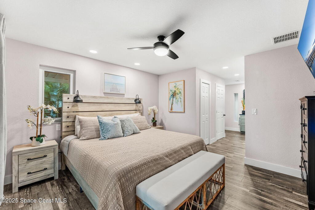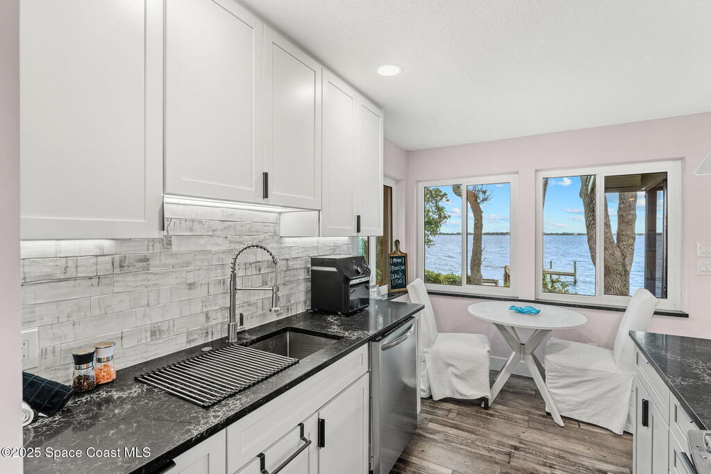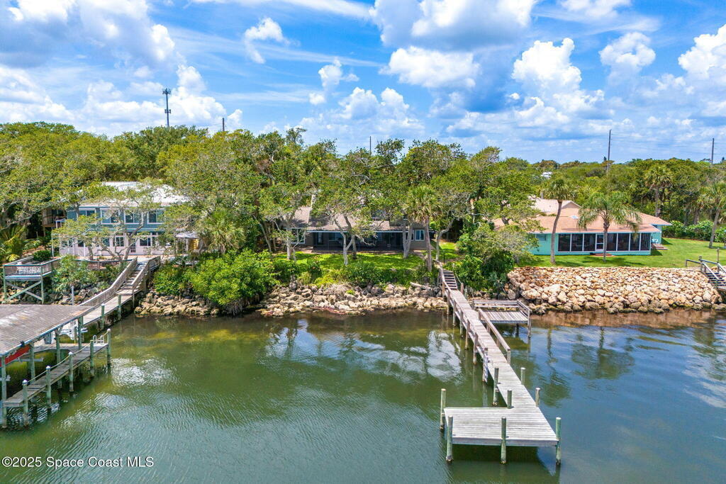 SPECTACULAR DIRECT RIVER FRONT PROPERTY in Rock Point Cul-de-sac Direct Indian River deep water location with the highest elevations built on the Coquina rock bluff. Complete RENO 2023 -2025. This tastefully renovated home with panoramic river views has all the modern amenities; featuring cathedral beamed ceilings, new open staircase, large open floor plan, huge great room, chef's kitchen, large new screened back patio & views, throughout the whole property! Nestled quiet Cud-de-sac location offers complete privacy adorned with majestic oak trees to enjoy outdoor living. Bring your boat and watch dolphins swimming to greet you off your dock. Short term rentals allowed for a great ROI for investor or snowbird. Structural Improvements include 2019 roof, impact windows, Dock 2025, electrical and plumbing, new fence2023. Short term Owner financing available.