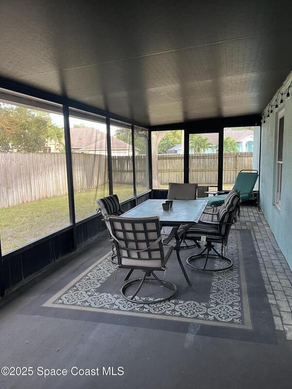 A beautifully maintained three-bedroom, two-bathroom home situated on a desirable corner lot in Melbourne. This property features full impact windows and sliders, providing peace of mind and energy efficiency. Enjoy the convenience of gas utilities, including a gas water heater, stove, and furnace. The open floor plan flows seamlessly into a modern kitchen complete with sleek finishes, ample storage, and a dedicated coffee bar area. Oversized master suite boasts large master bathroom with soaking tub and shower. Additional bedrooms provide ample space and comfortability. A private fenced yard offers the ideal space for relaxation or outdoor gatherings. Enjoy cool evenings and early mornings on your screened in back porch enjoying your favorite beverage. Perfectly located near local dining, shopping, Patrick Air Force Base, beaches, and Eastern Florida State College, this home blends comfort, style, and convenience in one exceptional package.