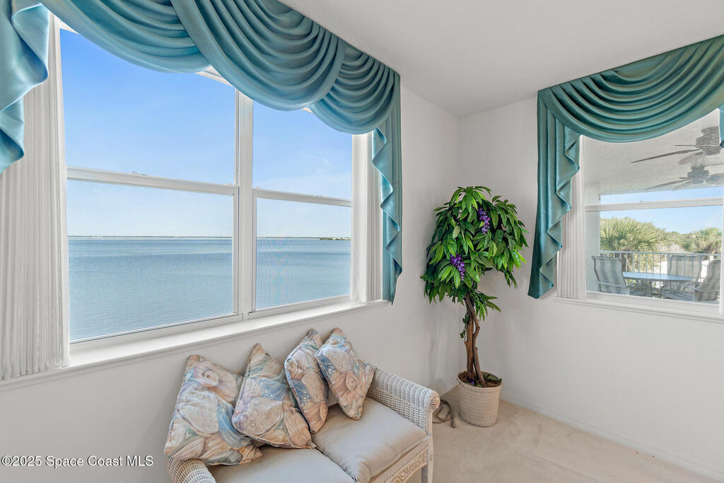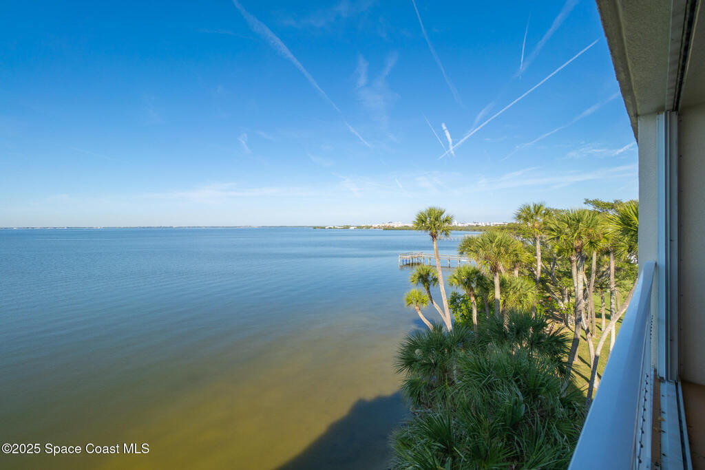 Experience LUXURY RIVERSIDE LIVING in this stunning 4th floor unit at Solana on the River. This spacious 3 bed, 2 bath residence offers spectacular PANORAMIC VIEWS of the Banana River, with cruise ships from Port Canaveral visible on the horizon. The open floor plan creates an airy, inviting atmosphere, complemented by a large kitchen and two dining areas. Enjoy abundant natural light from oversized windows throughout. Nearly every room in this exceptional unit offers breathtaking river views! Relax and unwind on your WRAPAROUND PRIVATE BALCONY PATIO, taking in the unforgettable sunsets. Enjoy the best of coastal living with the beach only minutes away. Residents benefit from RESORT-STYLE AMENITIES including a pool, spa, and tennis courts. Storm shutters and a secure underground garage with storage provides convenience and piece of mind. This premium END-UNIT location offers both privacy and unobstructed views in one of Cape Canaveral's most desirable waterfront communities!