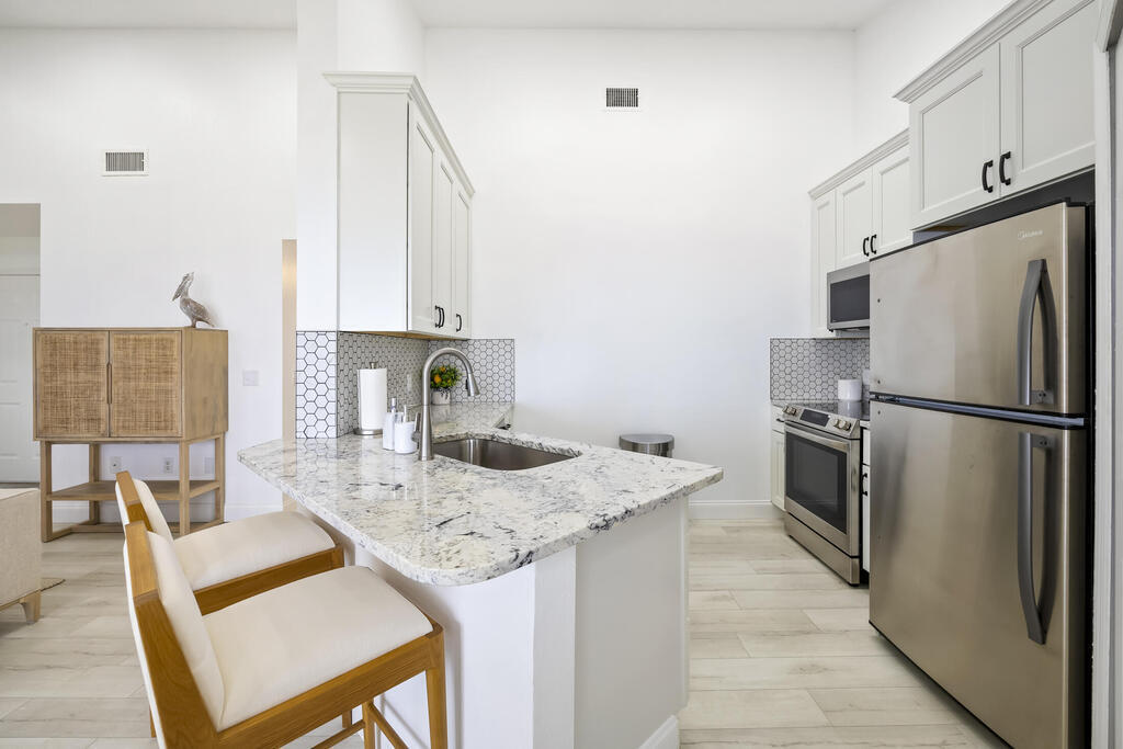 Imagine relaxing while enjoying the peaceful view and calming breeze from the Indian River and the occasional excitement of witnessing incredible Rocket Launches into space from your very own screened in balcony!! This stunning turn-key waterfront condo was beautifully updated in 2022. Upon entering the natural light-filled home the expansive view of the intracoastal waterway will captivate you. The vaulted ceiling creates a sense of spaciousness and you will certainly enjoy being on the top floor with no upstairs neighbors! The tasteful renovations include upscale features such as luxury vinyl plank flooring, granite kitchen countertops, stainless steel appliances, recessed lighting, ceiling fans, and quartz bathroom countertops. A brand new water heater was installed in 2022. New attic pull-down stairs lead to a surprisingly HUGE ATTIC STORAGE space; Water, Trash, Cable & Internet included in HOA Home also listed for rent.