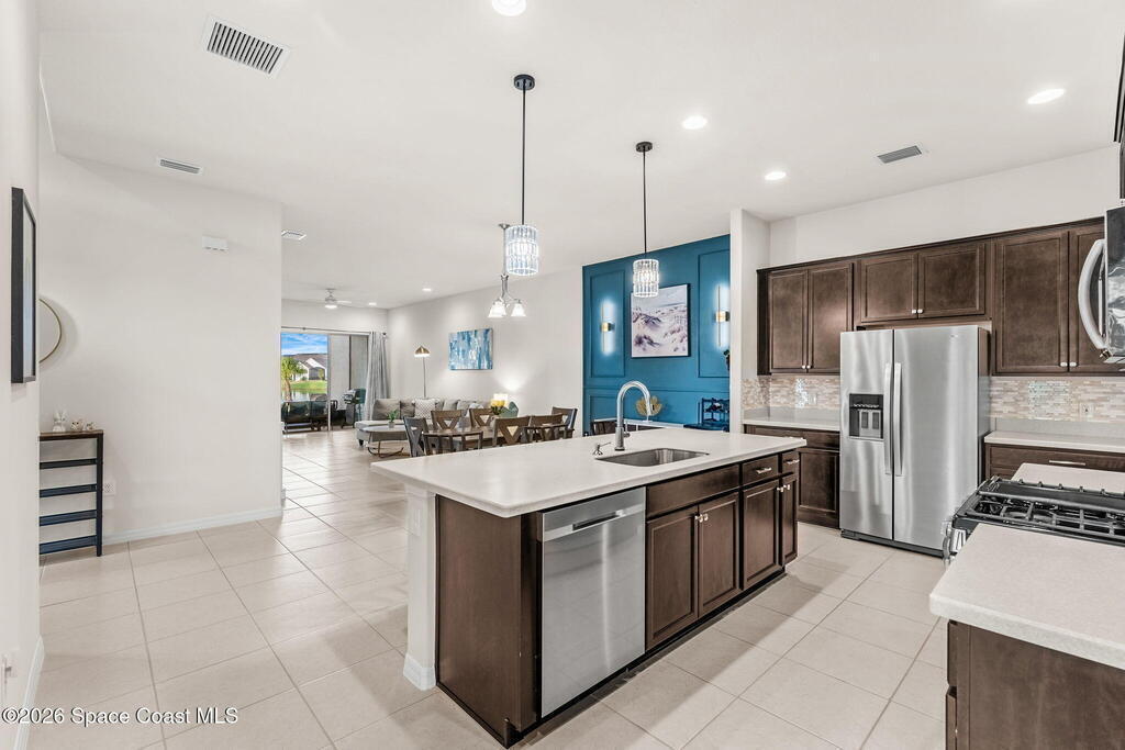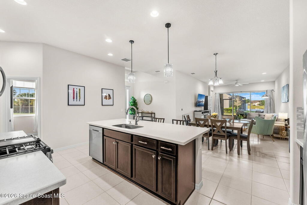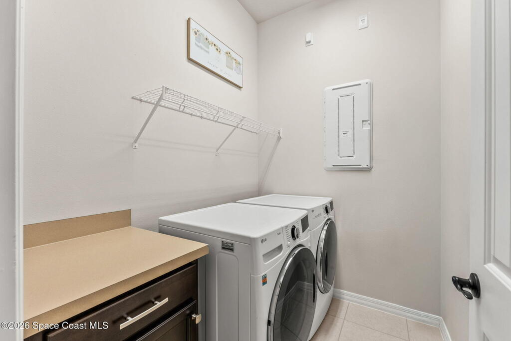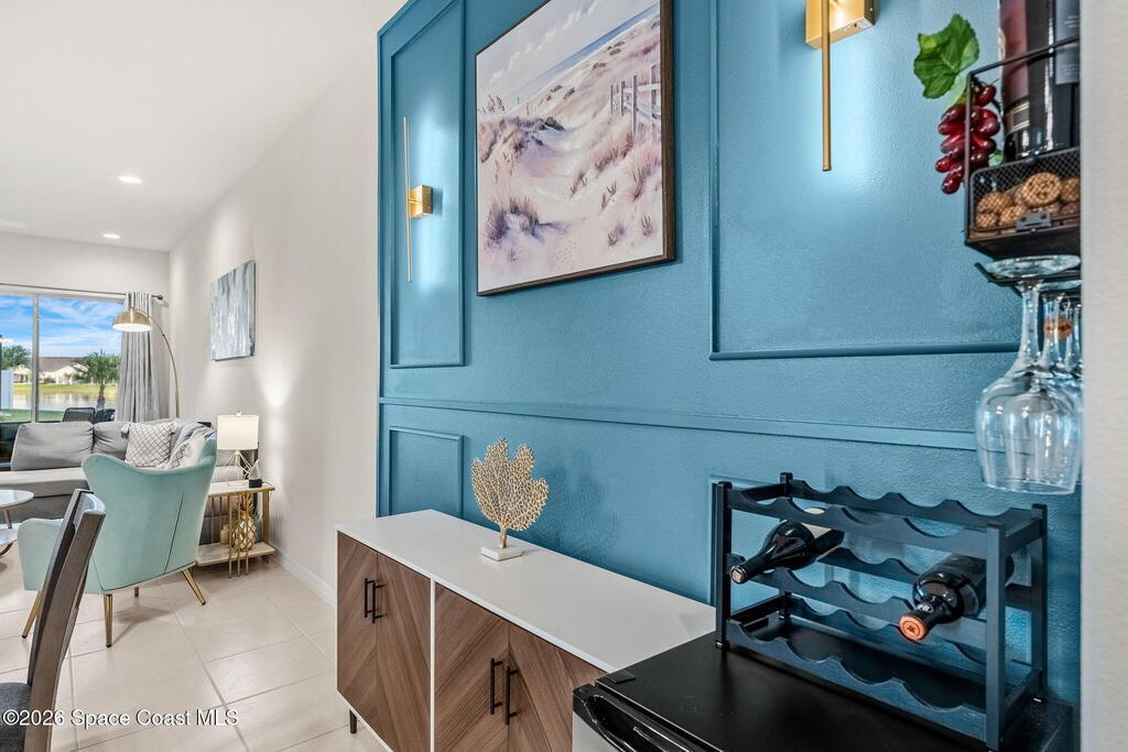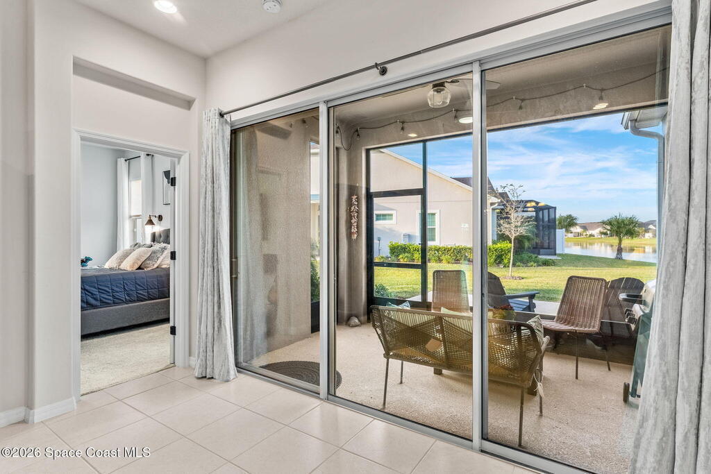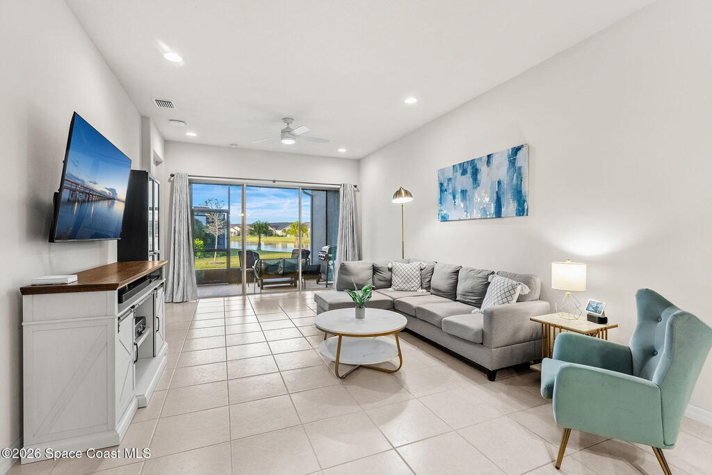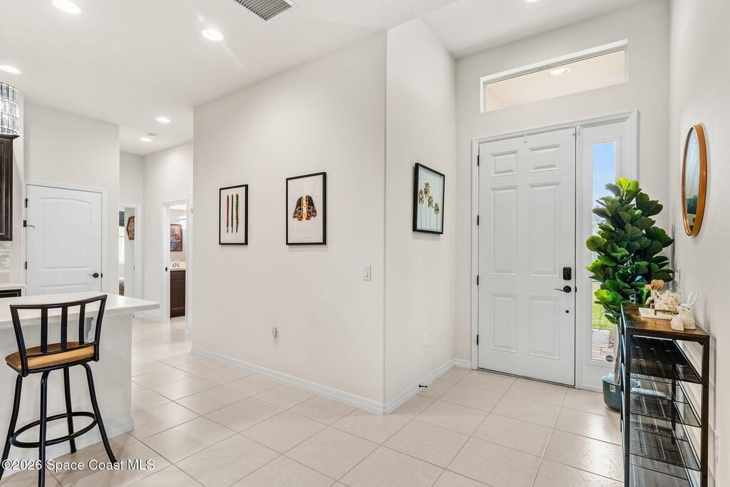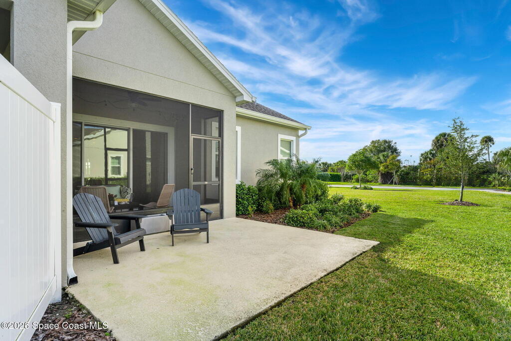 Live the ultimate carefree lifestyle in Viera, Forida in this stylish end-unit, single-story townhome on one of THE BEST LOTS in Avalonia, a rare .21-ACRE Lot! Enjoy privacy with side green space and preserve views across the street. Built in 2023 w/block construction, all windows and the front door are impact-rated. This Monterey II floor plan has 3 bedrooms, 2 baths, 2-car garage with epoxy floors, enhanced with beautiful upgrades: 18'' tile floors, wood cabinetry, quartz countertops, a large island w/pendant lighting, stainless steel appliances, and a custom accent wall. Spacious primary suite features a huge walk-in closet w/custom organizers, dual-sink vanity, and tiled shower. Screened porch overlooks the lake. HOA covers exterior maintenance, roof replacement, lawn care. Enjoy Addison Village Club amenities: pools, basketball, tennis, pickleball- just a bike ride away. Top schools! Short drive to the Beach (20 min), Northrop Grumman, L3Harris, KSC, Blue Origin and more!