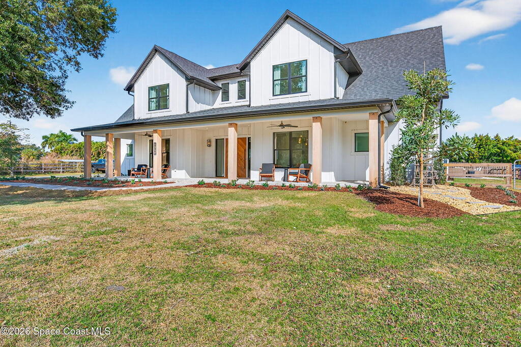 *Modern Farmhouse on 7 Private Acres with Lake & Pool*Rare opportunity to own a custom-built modern farmhouse on nearly 7 secluded, dry acres in the heart of Merritt Island. This 6-bed, 3-bath home features nearly 3,800 sq ft of stylish, functional living space--including an office, gym, and chef's kitchen with quartz waterfall island, GE Cafe appliances, and custom cabinetry. Enjoy a private 1.3-acre lake, heated pool & spa, outdoor kitchen, impact windows, propane fireplace, and a 1/4-mile private driveway. Zoned for top-rated schools and just minutes to beaches, shopping, and the Space Center. Room for horses, barn, or simply to relax in total serenity. Truly one-of-a-kind--schedule your private tour today! Seller recently completed a major front elevation improvement and landscape project.