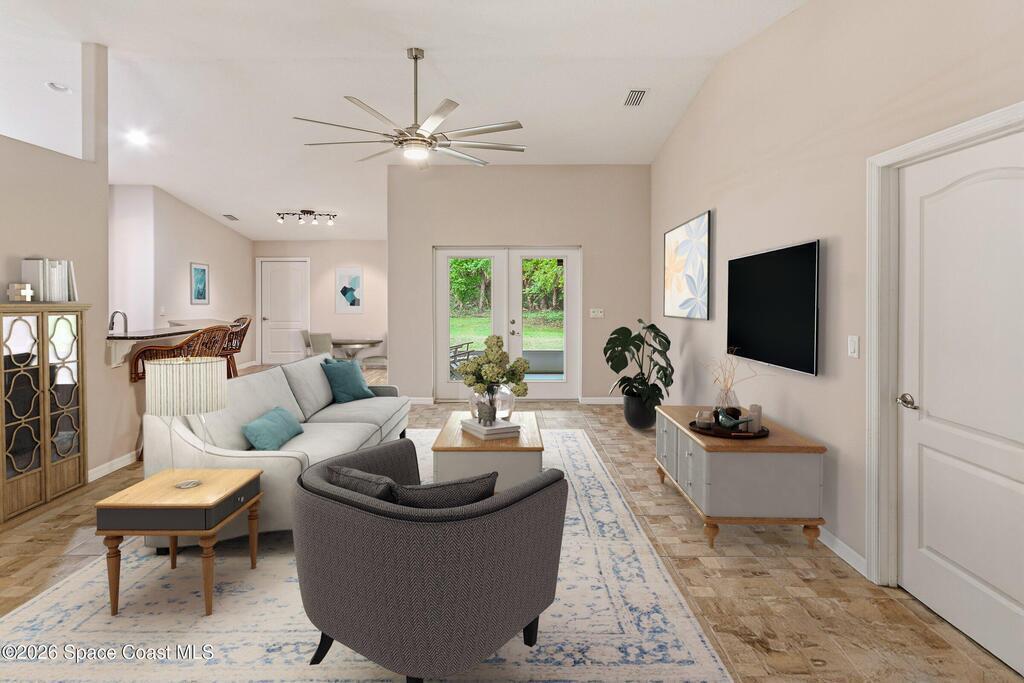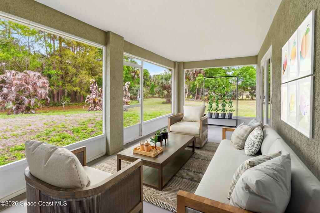 Situated in the quiet and scenic community of Grant-Valkaria, this custom 3-bedroom, 2-bathroom home with a dedicated office offers space, flexibility, and a peaceful Florida lifestyle. The open floor plan features inviting living areas filled with natural light, creating an ideal setting for both everyday living and entertaining.The kitchen flows seamlessly into the main living space and offers ample cabinet and counter space. The primary suite includes a private bathroom and generous closet space, while two additional bedrooms are well-sized for family or guests. The office provides the perfect setup for remote work, hobbies, or additional flex space.Outside, the expansive property offers room to add a pool and accommodates horses, providing endless possibilities for outdoor living and recreation. Enjoy privacy and open space while remaining conveniently located near local amenities, schools, and major roadways. A rare opportunity to enjoy country living with modern comfort.