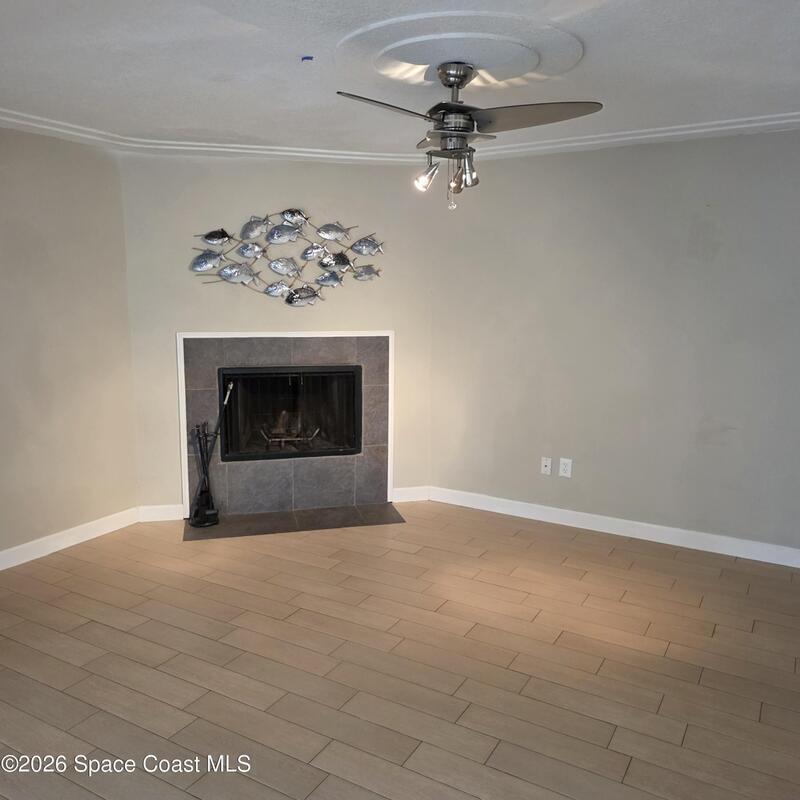 Bring offers! Welcome to this beautifully updated 2-bedroom, 21/2-bath townhouse that perfectly blends comfort, style, and location. The main living area features a cozy fireplace, creating an inviting space to relax or entertain. Just beyond, the sunroom fills the home with natural light and offers a peaceful spot for morning coffee.The remodeled kitchen is thoughtfully designed with modern finishes, new dishwasher and refrigerator. One year old roofs, new impact sliders, new washer and dryer. Enjoy the upper deck, ideal for quiet moments outdoors, while the spacious patio below is perfect for hosting friends and family--overlooking the community pool for a true resort-style feel. All new PVT flooring.Located within walking distance to the mall and the waterfront, this home offers exceptional convenience and lifestyle perks. As a bonus, enjoy the rare experience of watching rocket launches right from the neighborhood, making everyday living feel anything but ordinar