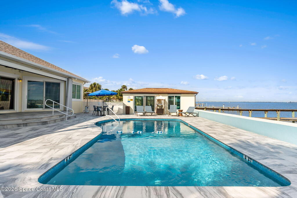WATERFRONT, PRIVATE POOL, DOCK, HOUSE AND 5-UNIT BUILDING! UPDATED! This opportunity offers luxury waterfront living. The remodeled Single Family House features 5 bedrooms, 2 bathrooms, a 2-car garage, private pool, and a dock directly on the Indian River, with spectacular views from the living areas, primary bedroom, and office.The property also includes a fully remodeled apartment building with 5 units. Four 1-bedroom units and one 2-bedroom unit, all featuring high-end finishes.Long and Short term rentals allowed.No details missed in the top-to-bottom renovation, showcasing high-end finishes and hurricane impact windows throughout. The kitchen is equipped with a premium refrigerator/freezer/wine fridge combination and a uniquely tucked-away oversized walk-in pantry. The primary bathroom boasts a massive spa-like walk-in shower, with the guest bath equally refined. Located near Sebastian Inlet, beaches, airports the Space Center, Port Canaveral, Cocoa Beach, and Disney World.