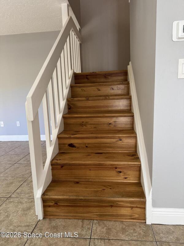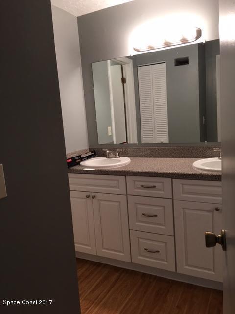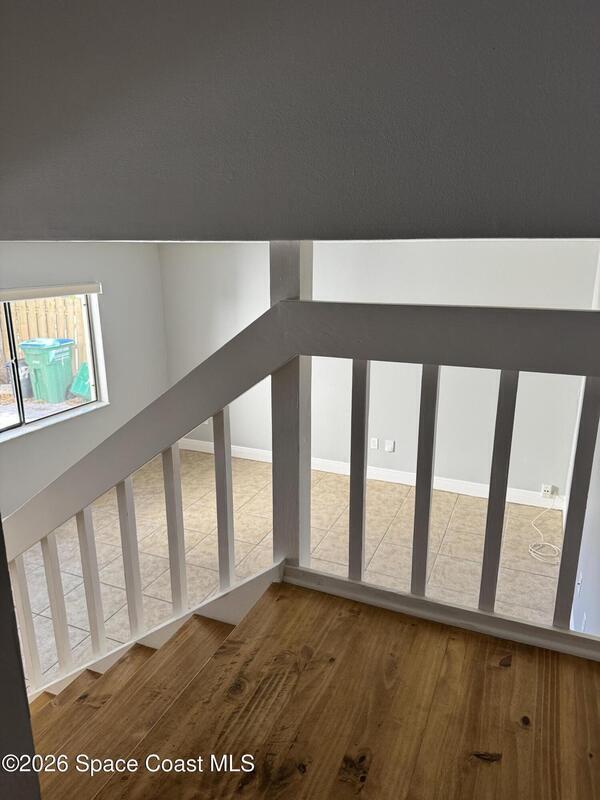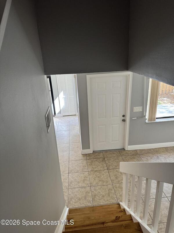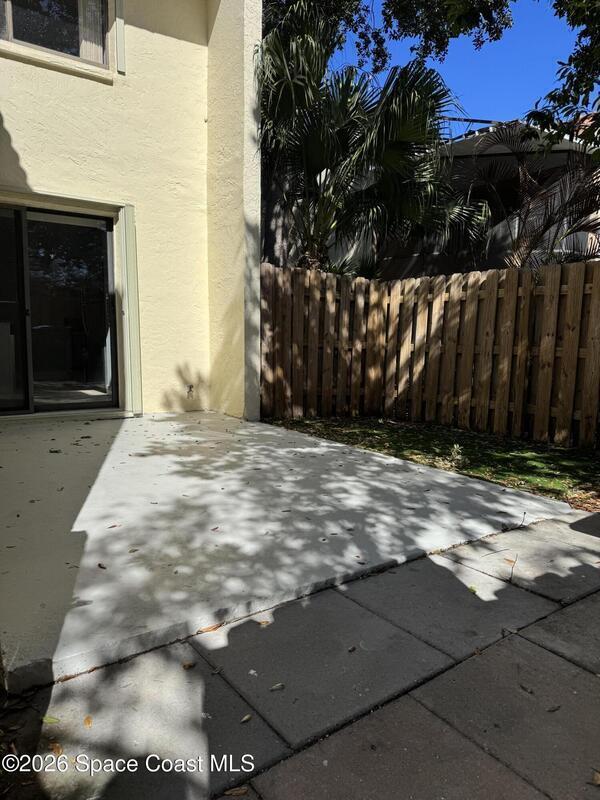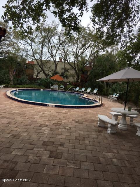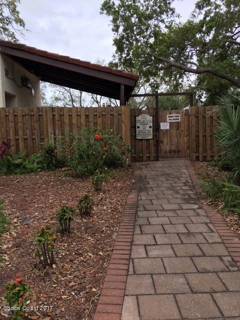 Enjoy the tropical surroundings in this beachside community. Stroll, jog or bike down the private pathway to the ocean & beach. Gated entry. This townhome has been freshly painted. White kitchen cabinets, updated counters, stainless steel appliance. Bathrooms have updated vanities, primary bathtub & shower. Tile, laminate and carpet flooring. Sliders from Kitchen to private courtyard. Washer/dryer hook up Community has 2 pools, tennis, rec room, & more. Close to Port Canaveral and all major roadways.Roof resurfaced 2022, exterior painted approx 3 years ago, interior painted 2026, new vertical blinds 2026.Hurricane Shutters
