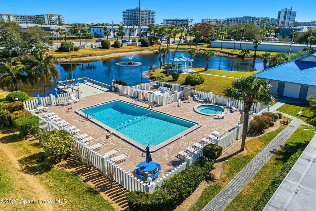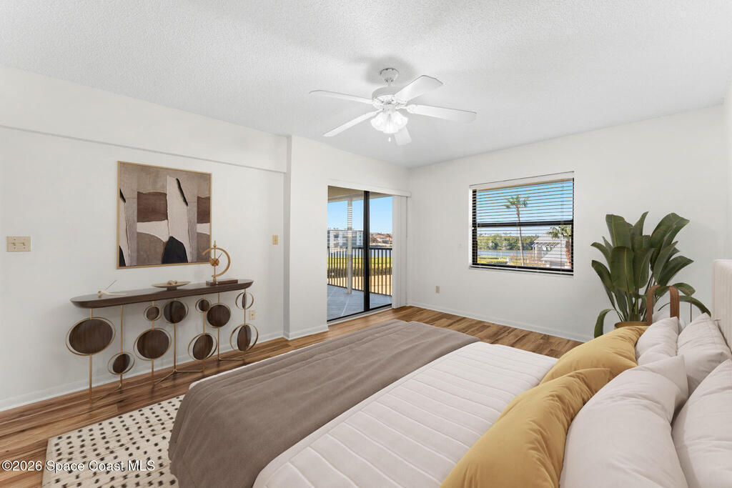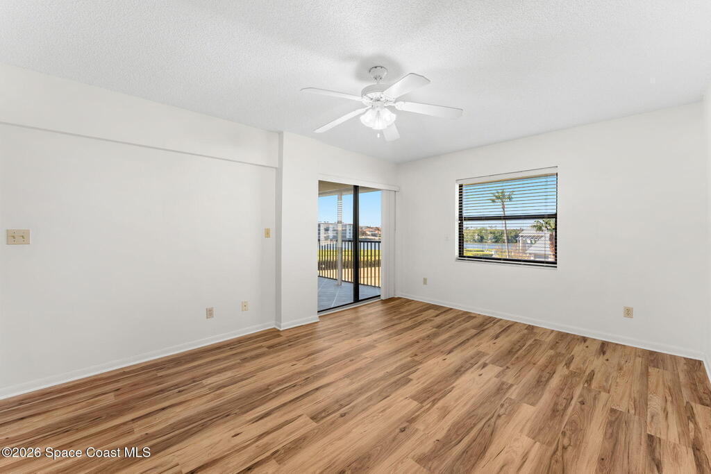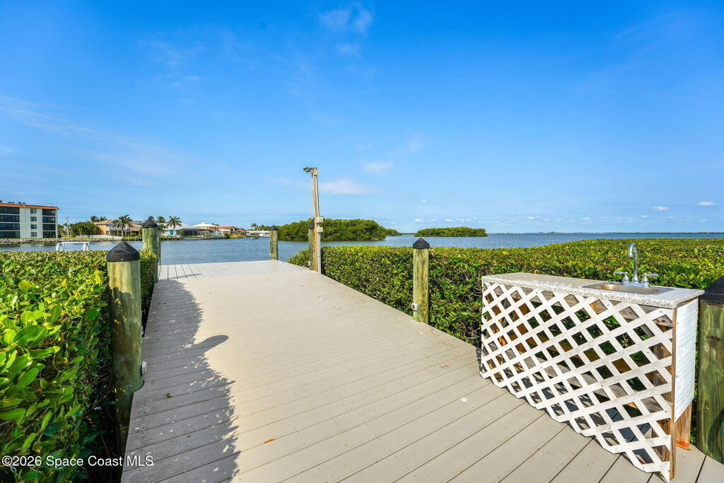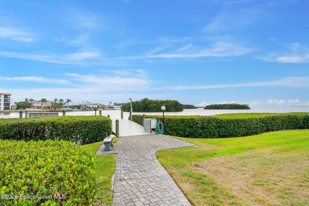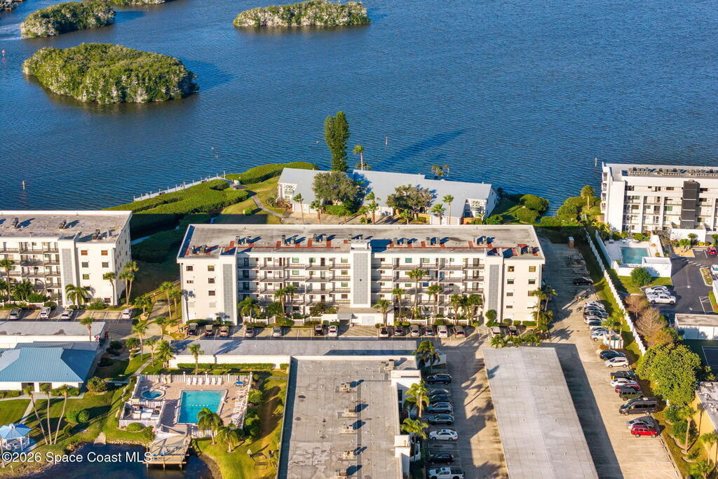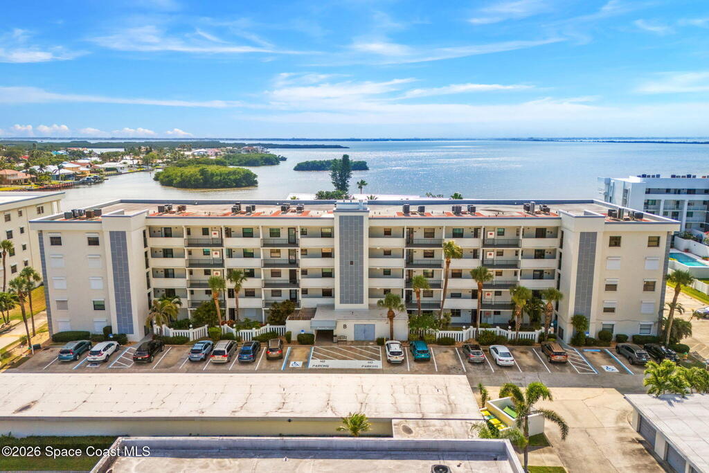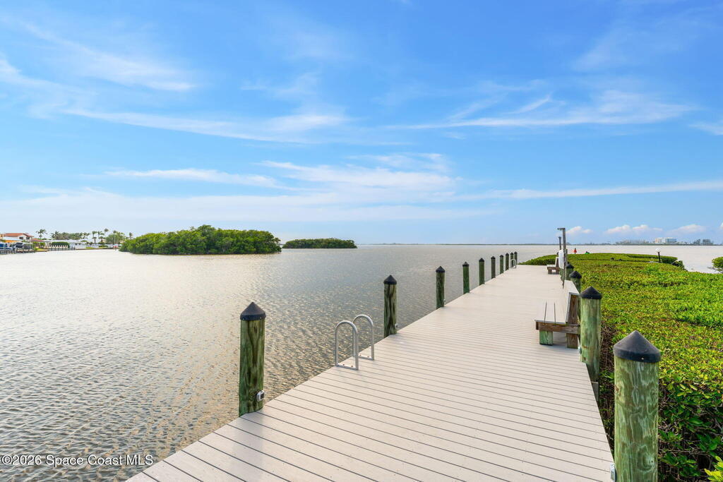 Enjoy front-row sunset views over the Banana River from this rare 2-bedroom, 2-bath condo in Fountain Cove. With nearly double the balcony and living space of any neighboring units, this wide-layout plan feels more like a stand-alone home than a condo, offering unobstructed panoramic water views. Inside, you'll find it warm and inviting, with new laminate flooring in the main living areas and a spacious, open layout that's ideal for everyday living or seasonal stays. The large primary suite offers water views and an en-suite bath, while a private in-unit washer and dryer and a one-car garage just steps from the main building add everyday convenience. Fountain Cove offers resort-style amenities including a riverfront heated pool, spa, tennis courts, and scenic boardwalk. The oversized balcony is perfect for relaxing, watching wildlife, or taking in the boat parade and spectacular sunsets. All just a short walk to the beach, Publix, and restaurants.