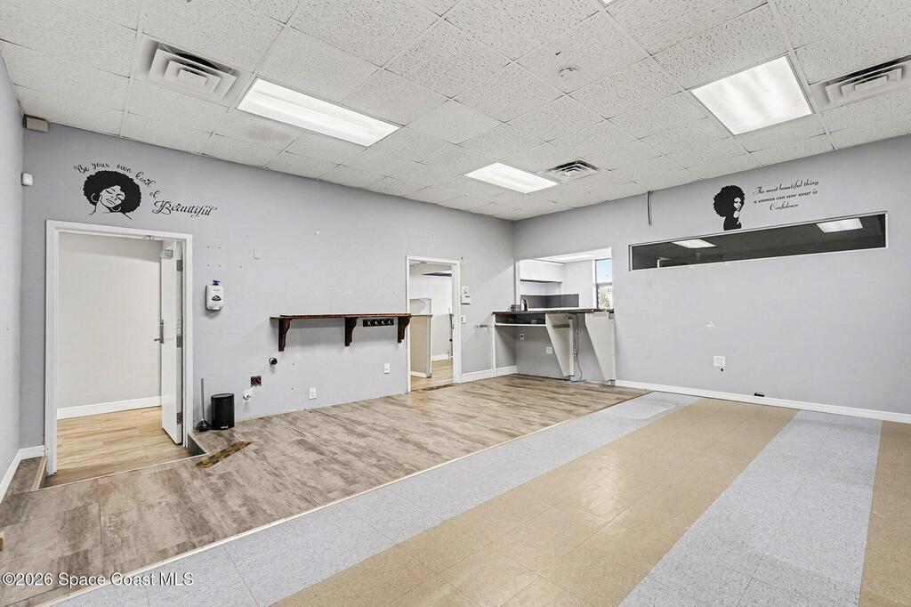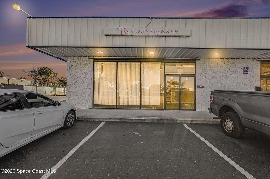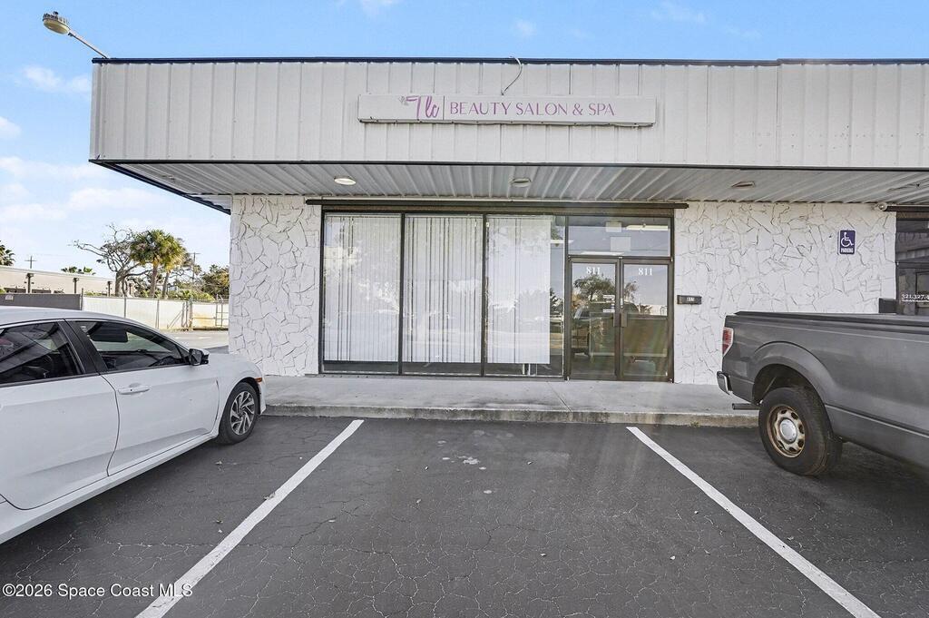 1219sqft of office/retail space on highly visible, high traffic Hibiscus Blvd just off of US1. 425 sq feet of garage/warehouse space with a roll up door for added storage for deliveries. Design the space to your needs, currently set up as a salon. 2 bathrooms. Parking lot. Adjacent professional offices.