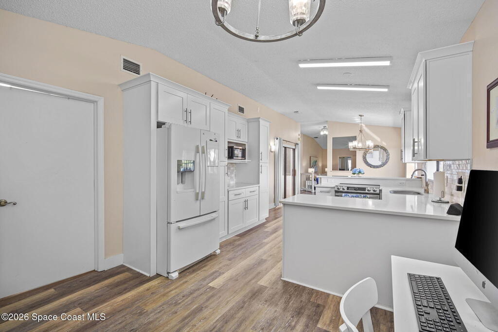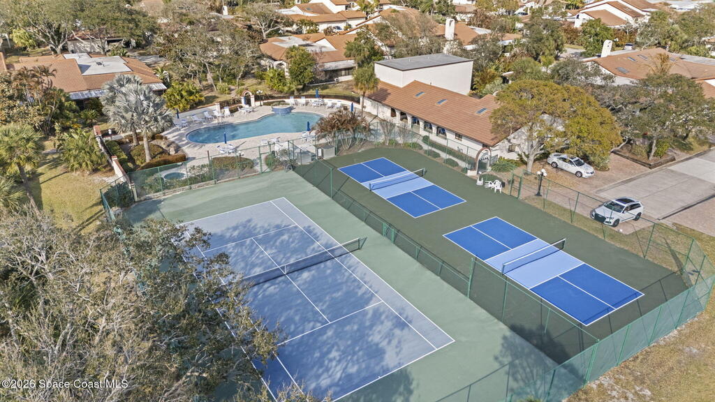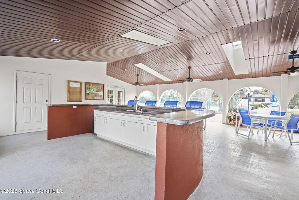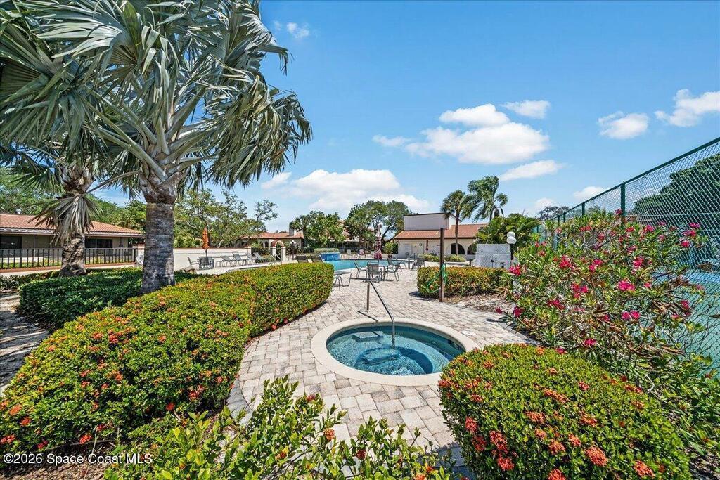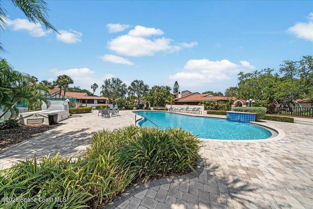 This sun-filled end-unit lives more like a home than a condo, featuring vaulted ceilings, skylights, and a private atrium that brings natural light into the center of the space throughout the day.The open great room with gas fireplace flows effortlessly from the eat-in kitchen with garden window, ideal for entertaining or relaxed everyday living. Large arched openings add architectural character while maintaining an airy, connected feel.The primary suite offers a walk-in closet, dual-sink bath, and an adjoining flex room perfect for an office, fitness area, or reading retreat overlooking the tennis courts. The guest bedroom features an attached bath with dual access from the hallway, creating privacy for visitors while remaining convenient for daily use.With three bedrooms, two baths, and a two-car attached garage, the layout offers the space and function of a single-family home while keeping the simplicity of low-maintenance living.Designed for easy Florida living,