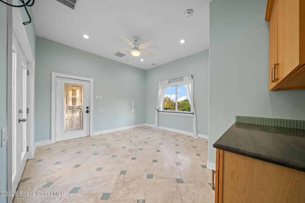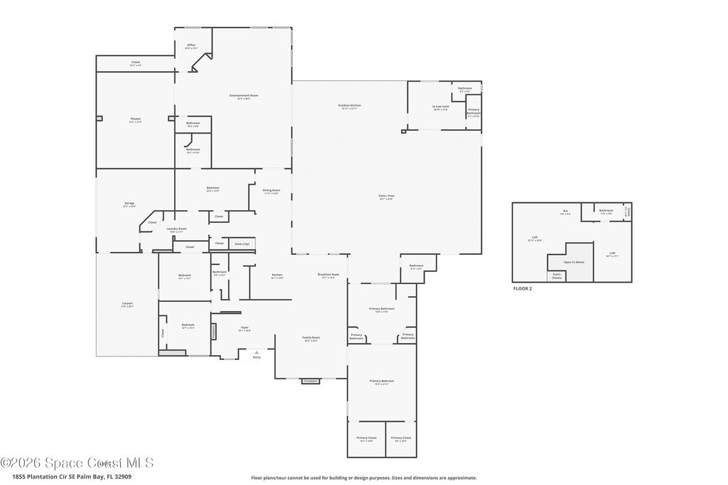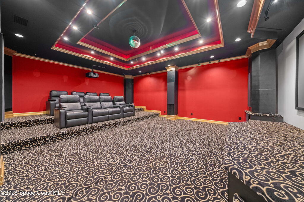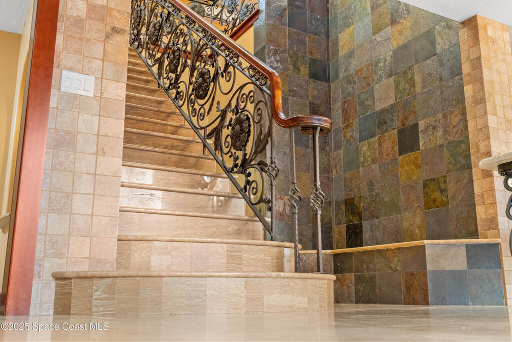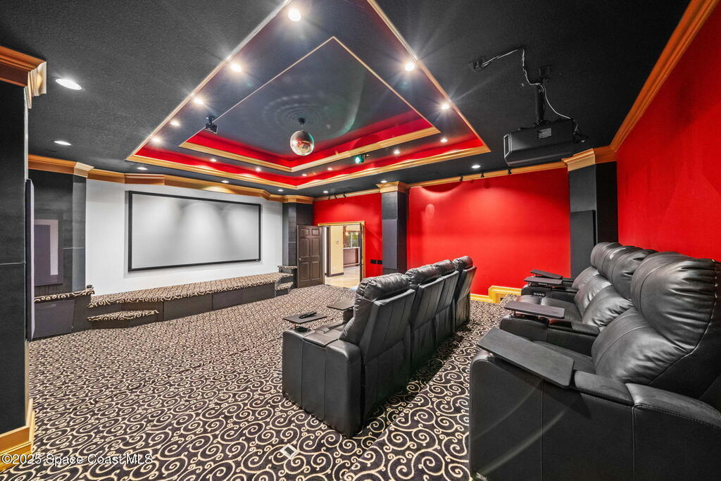 A rare opportunity to own a stunning Mediterranean-inspired estate offering over 6,000 square feet of refined living with 6 bedrooms and 6.5 baths. Architectural features include a grand marble staircase, soaring ceilings, an indoor waterfall, rich stone accents, and multiple entertainment areas. Designed for everyday comfort and entertaining, this home features expansive open living areas, private wings, and a home theater- with all equipment included. A separate 1/1 in-law suite, complete with a kitchenette and an oversized shower featuring multiple shower heads is ideal for guests, extended family, or a private living space. The backyard is a retreat with a large pool, outdoor kitchen, pool bath, and a serene pond with a dock and built-in seating, perfect for enjoying peaceful sunsets. Situated in a quiet no-HOA neighborhood, just minutes from I-95, the new Publix, and a growing selection of shopping and dining, this property delivers luxury, privacy, and convenience all in one!
