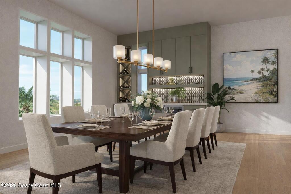 Located in the Shores at Tranquility, this to-be-built custom estate offers 3947 square feet of living space in one of Titusville's most desirable new communities. The thoughtfully designed 4-bedroom, 3.5-bath residence blends modern architecture with high-performance construction.Built with full insulated concrete form (ICF) construction on all floors, an engineered slab, wind-rated roof system, and impact-rated windows and doors, this home delivers strength, comfort, and durability. Interior features include level-5 drywall finishes, solid-core doors, oversized trim, custom cabinetry, and architectural detailing. Open living areas flow to covered outdoor spaces.Additional highlights include zoned Daikin HVAC, open-cell spray foam insulation, tankless gas water heater, whole-home generator, 400-amp electrical service pool, paver entry and lanai, and integrated security. Minutes from beaches, boating, and rocket launches on Space Coast!!