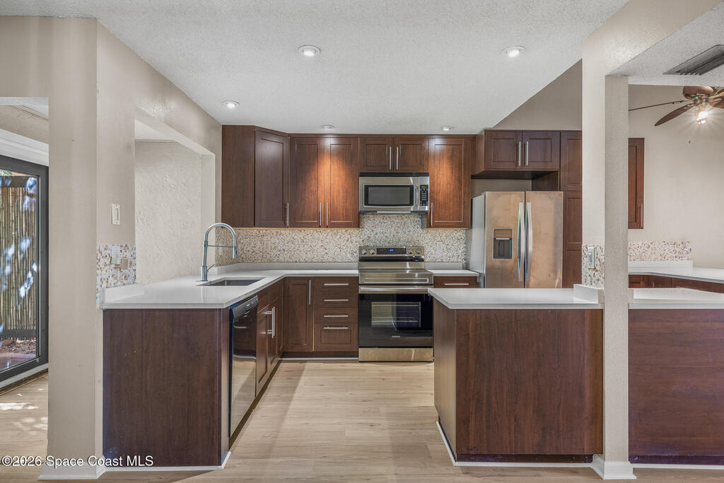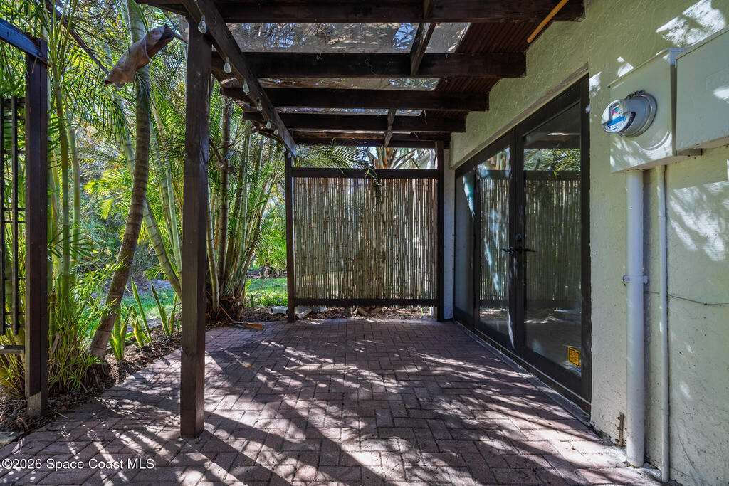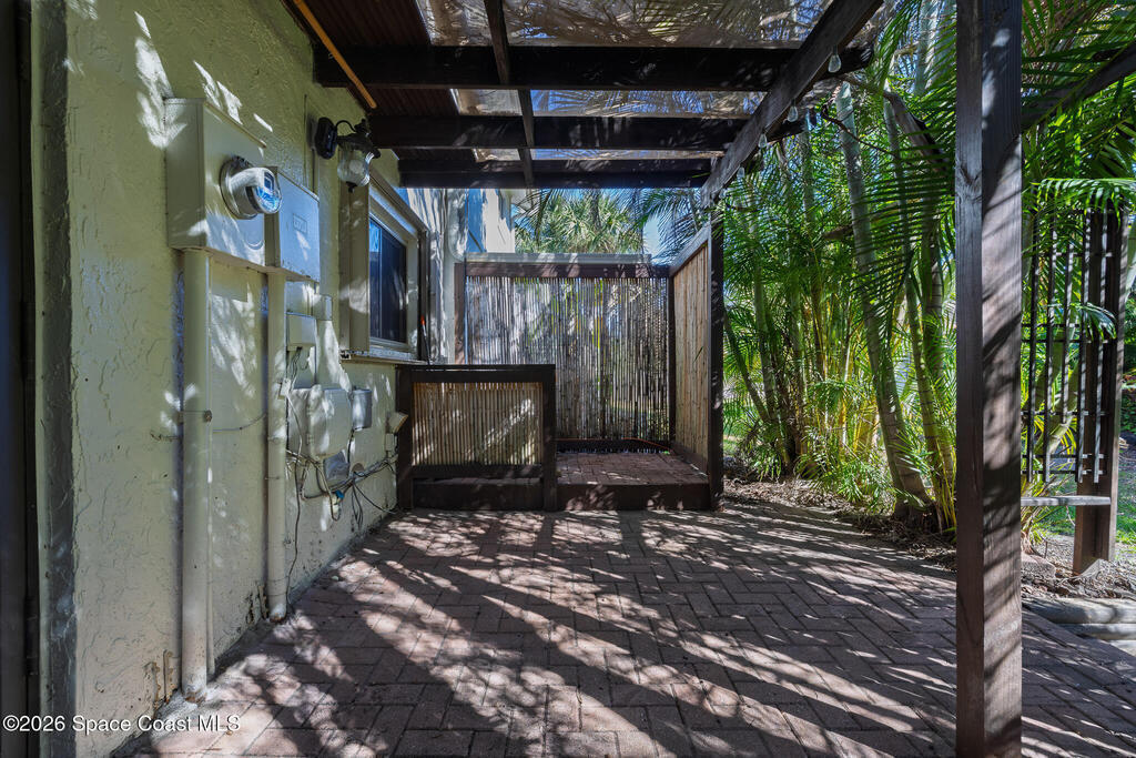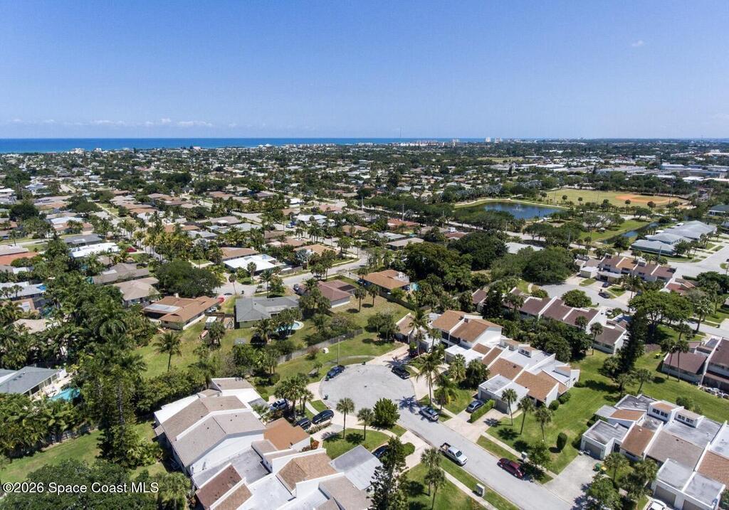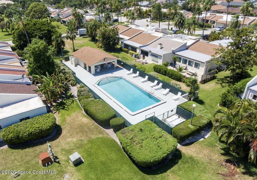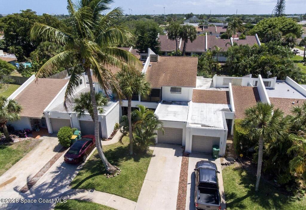 Only unit available in the community! Nestled on a quiet beachside cul-de-sac, this beautifully updated townhouse offers the perfect blend of comfort, style, and coastal charm. Featuring an open floor plan with three spacious bedrooms, two and a half bathrooms, and nearly 1,600 square feet of living space, the home showcases acid-stained, high-sheen concrete floors paired with new luxury vinyl throughout. The stunning kitchen is designed to impress with sleek quartz countertops and custom-built cabinetry. The fully remodeled primary bath creates a spa-like retreat, complete with a walk-in shower and a separate vintage clawfoot tub. Off the master bedroom is a screened patio and private rooftop living area--your own peaceful oasis. A second set of French doors opens to a lush, tropical backyard retreat to make your own peaceful oasis. The low monthly HOA includes lawn care, a community pool, and clubhouse. Located in an A-rated school district and just a short bike ride from the beach,