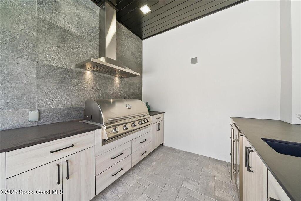 Waterfront dream with direct rocket launch views. Sitting directly across from the Kennedy Space Center, this California Modern beautiful home sits front and center of the breathtaking views of the Indian River and its surrounding natural beauty. Featuring an open floor plan combining the love of luxury with the warmth of Florida living it offers 4 spacious bedrooms with 3.5 bathrooms. Entertain in the relaxing escape to backyard oasis featuring a fenced in pool, spa, and summer kitchen. If waterfront living is for you, this is a must see.