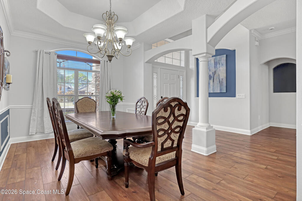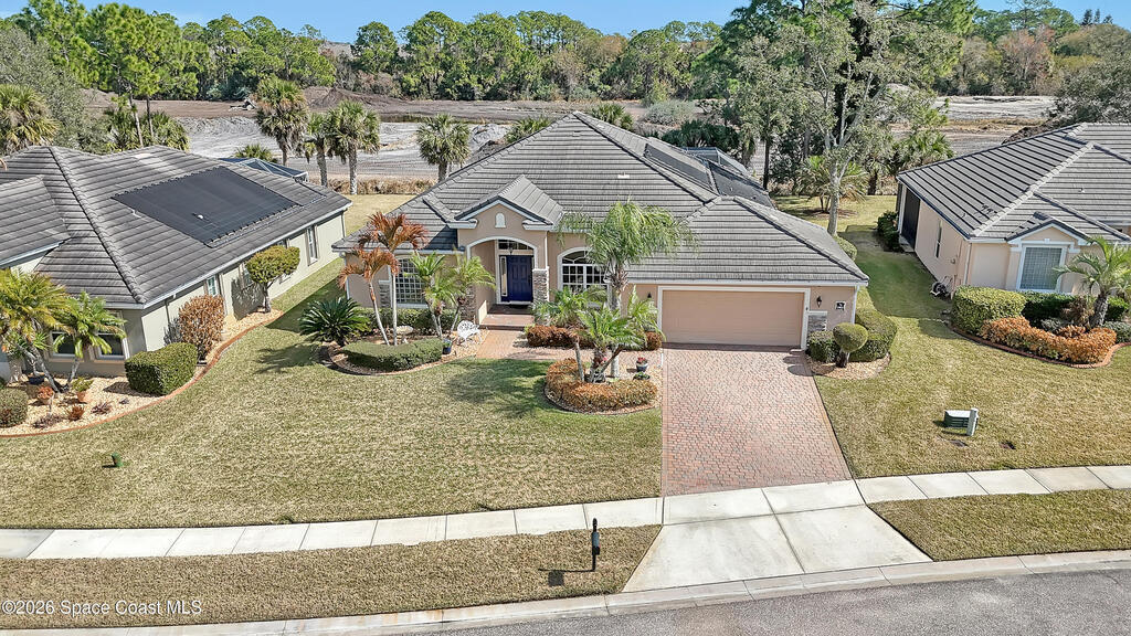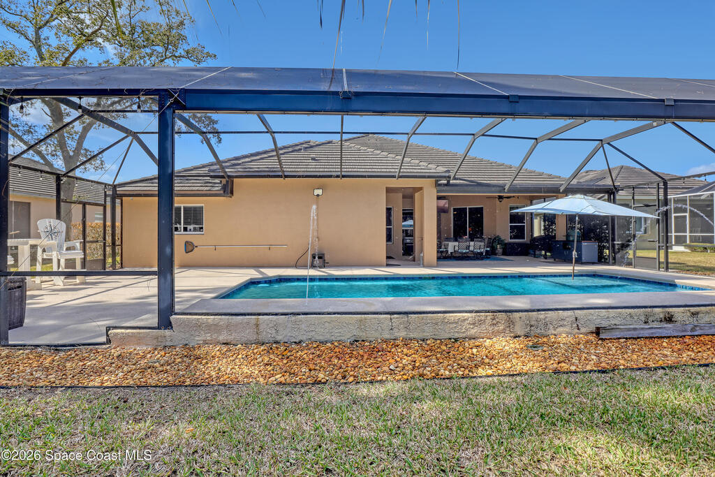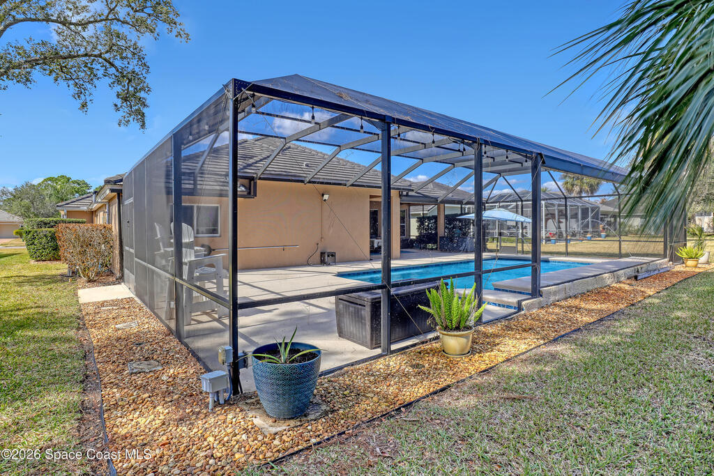 Absolutely gorgeous pool home located in exclusive Augusta Trace. Only 54 executive homes in this dead end street community. Lots of mature trees & landscape w/tons of character. $125,000 pool package! Huge screened heated pool w/beach area & umbrella, LED lit shooter fountains & waterfall. Pool has multiple lights & show options. Large covered area w/grill/green egg patio furniture(negotiable). Amazing area for outdoor entertaining. Truly must see. New TILE roof in 2020. New AC in 2021. All new flooring in 2023. Chefs island kitchen w/42in cabinets w/crown molding & solid surface countertops. Nice primary suite w/extra sitting room, double walk-ins, & garden tub/separate shower. Oversized 650 sq ft garage. 4 camera security system. Hurricane shutters. Great curb appeal w/brick paver driveway & stone accents. Pride of ownership throughout w/nice upgrades. Great location! Don't miss it!