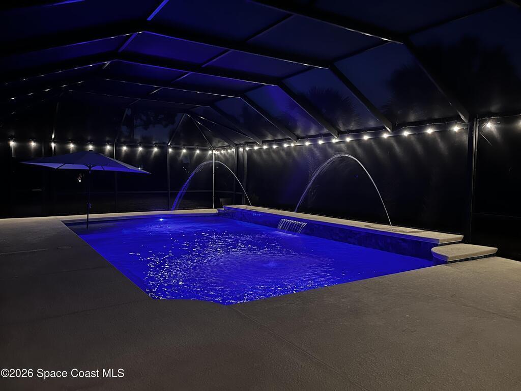 Pool Features: Heated, In Ground, Screen Enclosure, Solar Heat and Waterfall