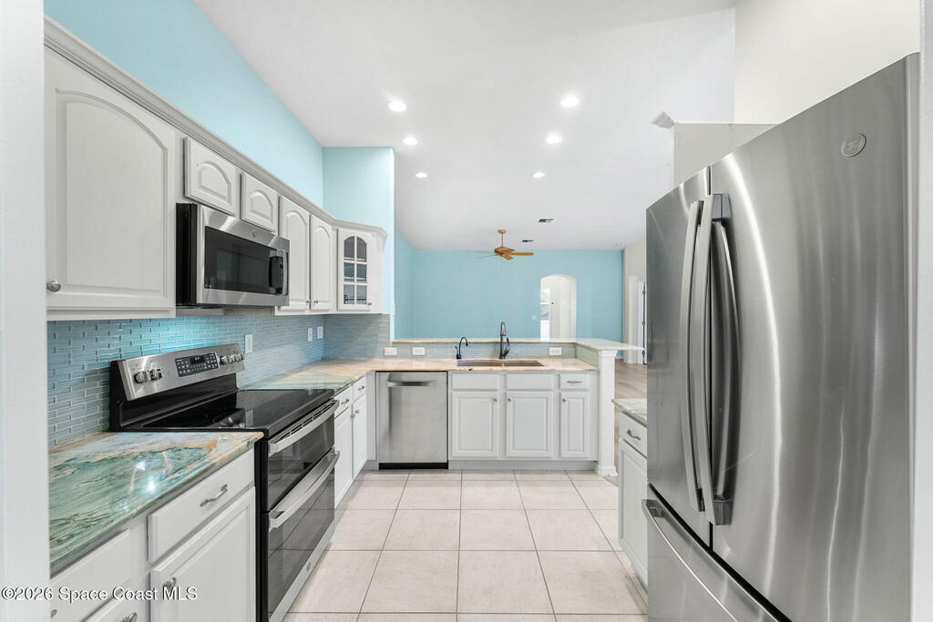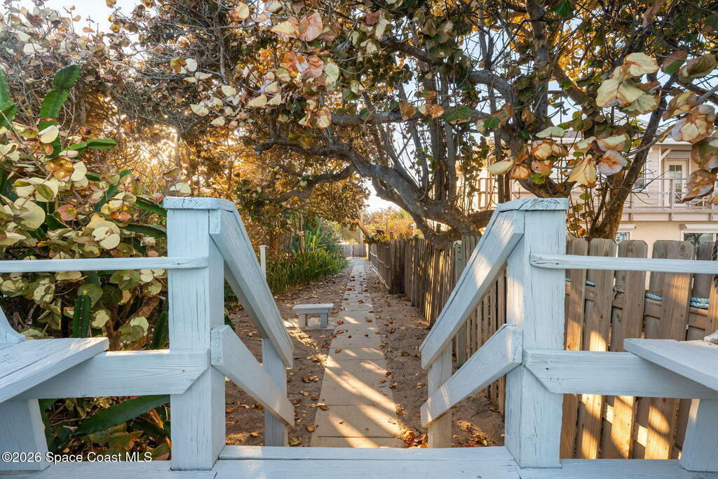 Morning light pours through vaulted ceilings into a soaring great room that spills effortlessly into a private courtyard entry--the seller's favorite place to unwind after salty beach walks and sunset bike rides. Just moments from deeded ocean access, every day begins and ends with the rhythm of the waves. Granite countertops anchor an open kitchen designed for easy gatherings, while new luxury vinyl plank and tile flooring keep life carefree and sand-friendly, while closet built ins keep things organized. A statement wall primary suite with an updated en-suite with stone shower flooring and oversized vanity round out the home. Tucked on a quiet cul-de-sac in Melbourne Beach, this half-duplex townhome delivers the best of coastal living without the fuss--updated with an exterior 2022 A/C, 2023 water heater, second refrigerator in the garage and generator for peace of mind--so you can spend less time maintaining and more time embracing everything that makes beach life unforgettable.