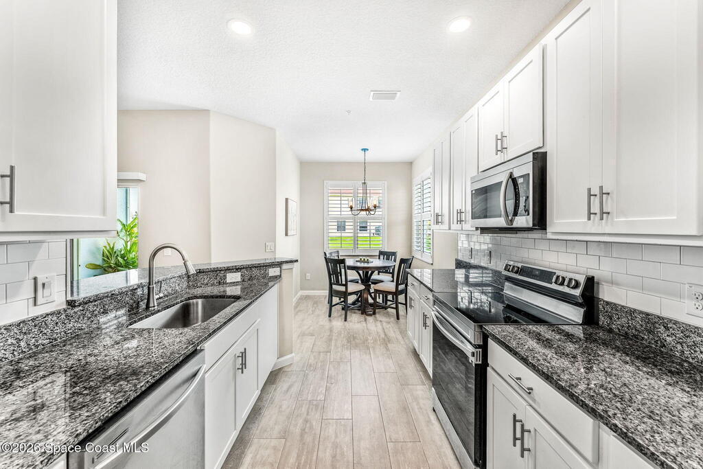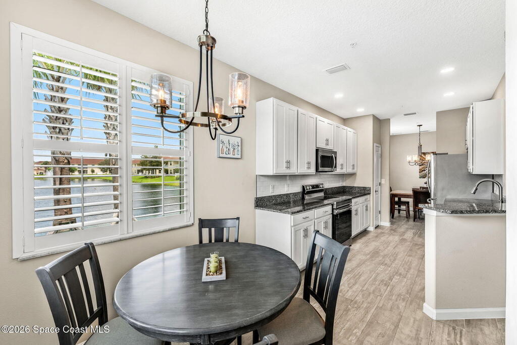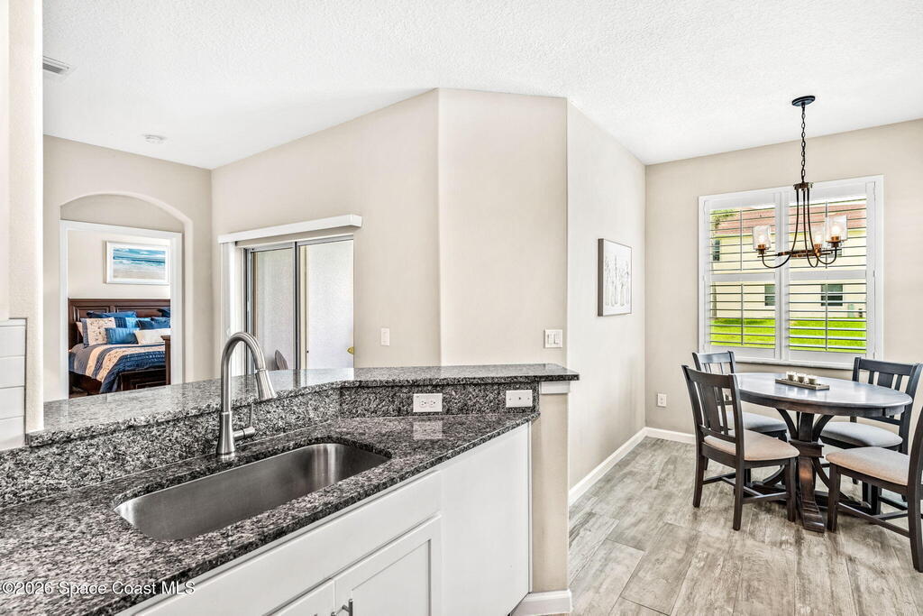 Corner-unit energy. Vaulted-ceiling volume. Zero compromise. This 3BD/2BA condo in Bella Vista delivers the kind of layout buyers fight over - open, airy, and split for privacy. Granite countertops, breakfast bar seating, and an easy-flow floorplan make everyday living (and entertaining) effortless. Tile where you need it, carpet where you want it. Walk-in closets? Of course. One-car garage? Absolutely. But here's where it gets good... 2023 upgrades include plantation shutters, a specialty sliding door blind, custom glass guest bath enclosure, screened patio, and freshly seal-coated garage floor. Add manual storm shutters and a smart thermostat for peace of mind and efficiency. Polished. Practical. Positioned on a prime corner.This one checks boxes you didn't even know you had!