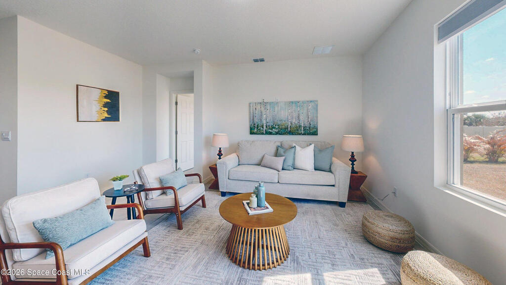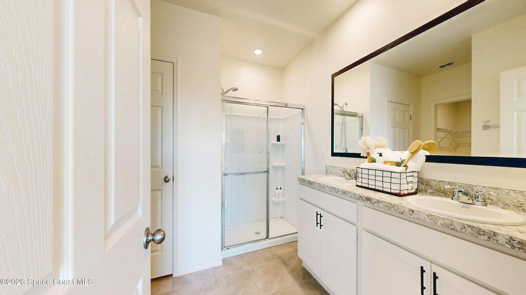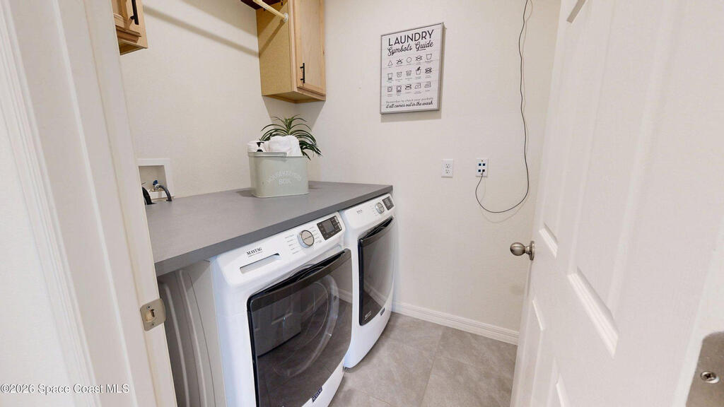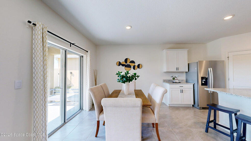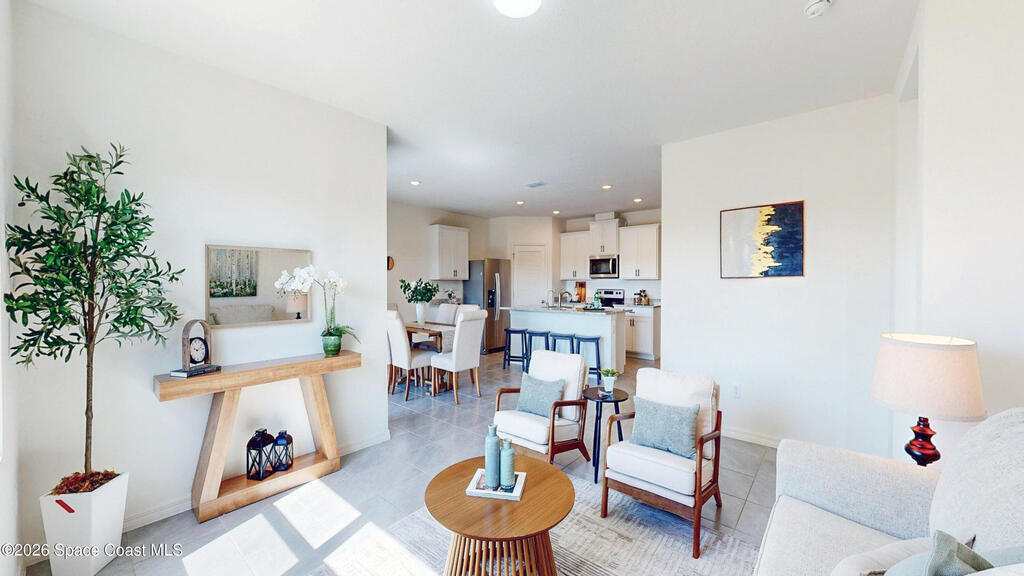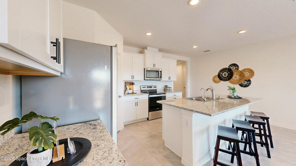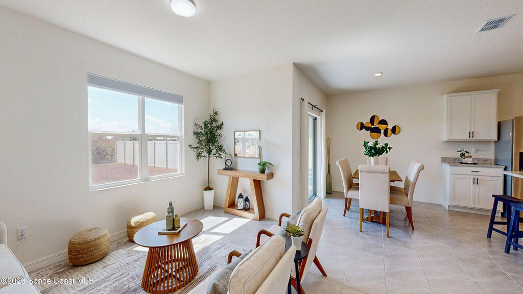 Spacious 4 bedroom, 2 bath Cali Model floor plan! This Smart Home has everything! Large kitchen island. Walk-in pantry. Stainless appliances. Shaker white cabinets (extra high). Dining area and the living room creates the space for family and entertaining with high cathedral ceilings. Neutral gray tile throughout and fresh neutral paint. Recessed lighting.Split floor plan. Meticulous garage with speckled floors. Big yard with no neighbors behind you! HVAC Nov. 2023.
