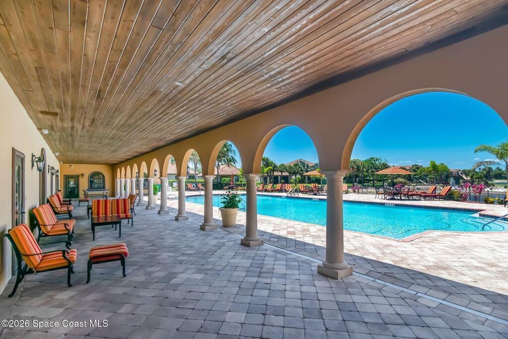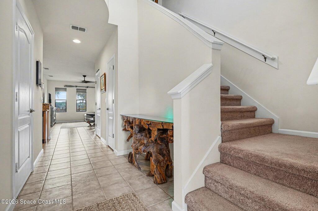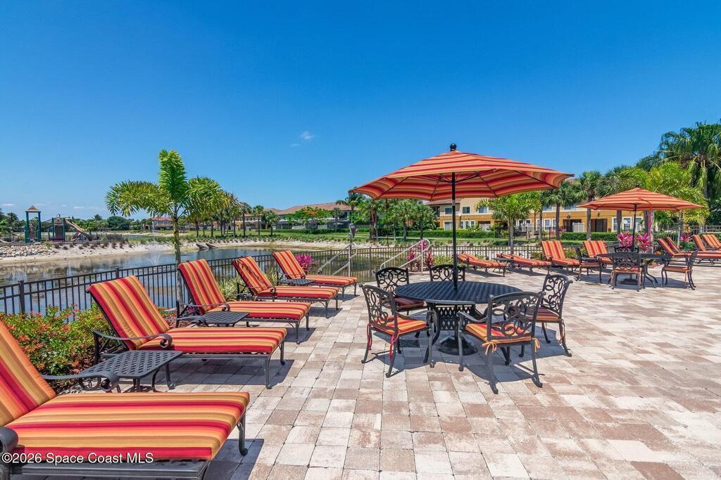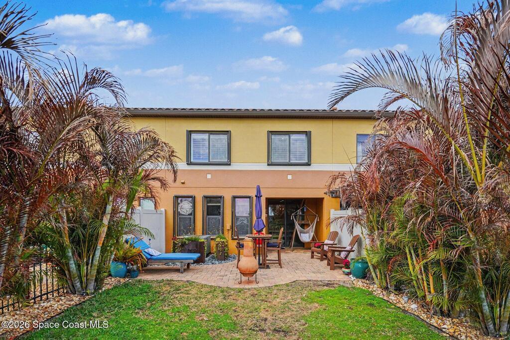 Welcome to this beautifully maintained 3-bedroom, 2.5-bath, 1-car garage two-story townhome located in the highly desirable Montecito community in Satellite Beach. Perfectly positioned on the largest pond in the neighborhood, this home offers breathtaking, dead-center fountain views - truly up close and personal -creating a serene coastal backdrop from your own backyard. Designed with neutral coastal tones throughout, this move-in ready retreat combines comfort, style, and thoughtful upgrades. The interior features plantation shutters 2021, updated dining room lighting and a new living room ceiling fan, plus brand new washer and dryer (Dec 2025) and a new microwave (2025). HVAC 2018 with annual maintenance, and the hot water heater 2022, offering peace of mind. Carpet, tile, and grout were professionally cleaned February 13, 2026. The exterior improvements are equally impressive. The extended paver driveway and sidewalk provide additional space and enhanced curb appeal..see more...