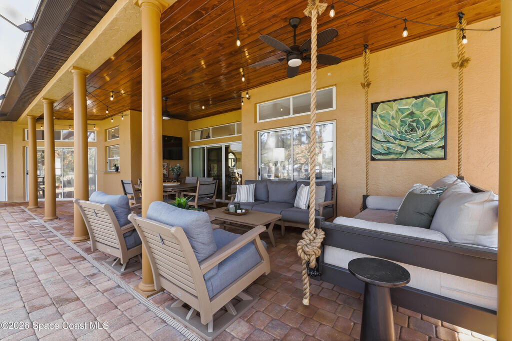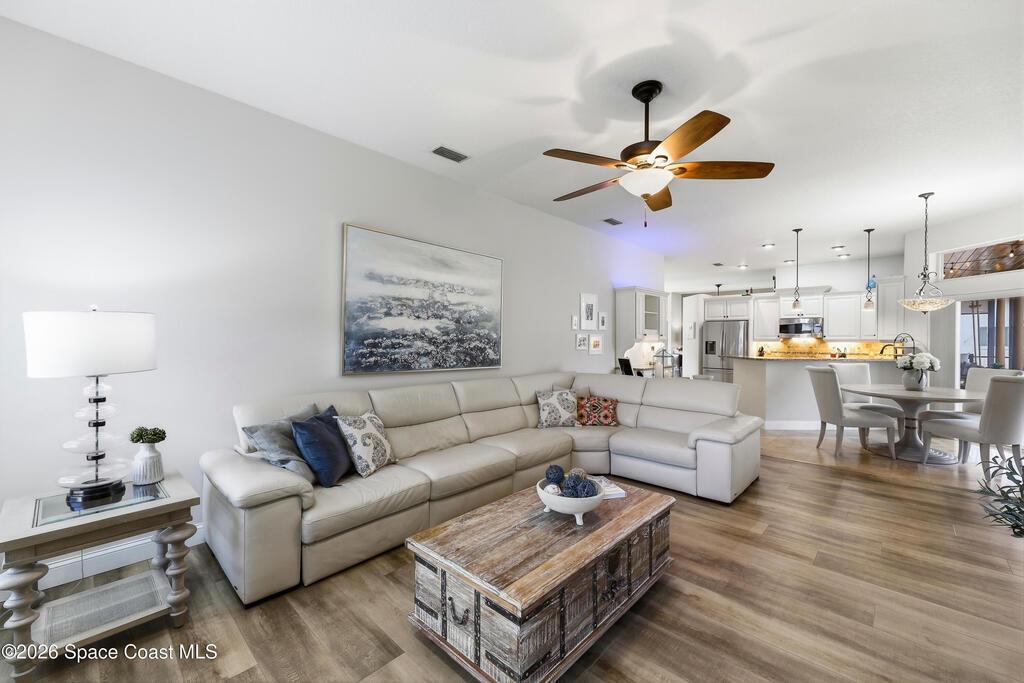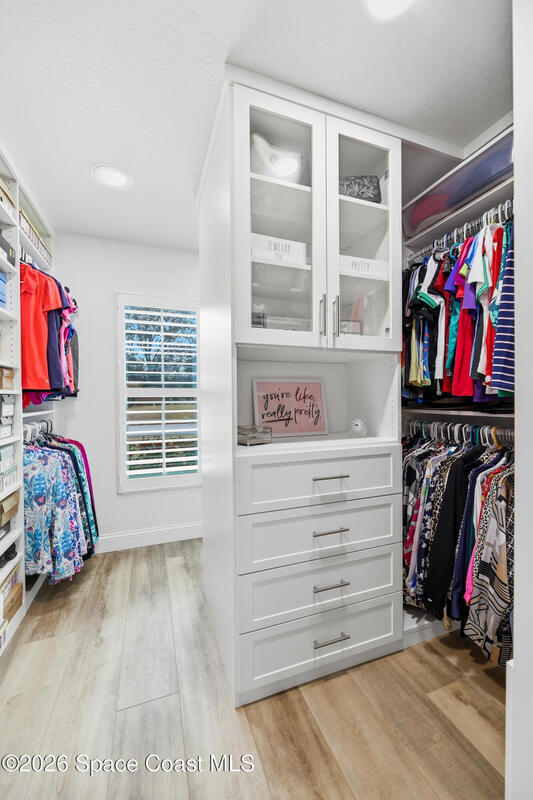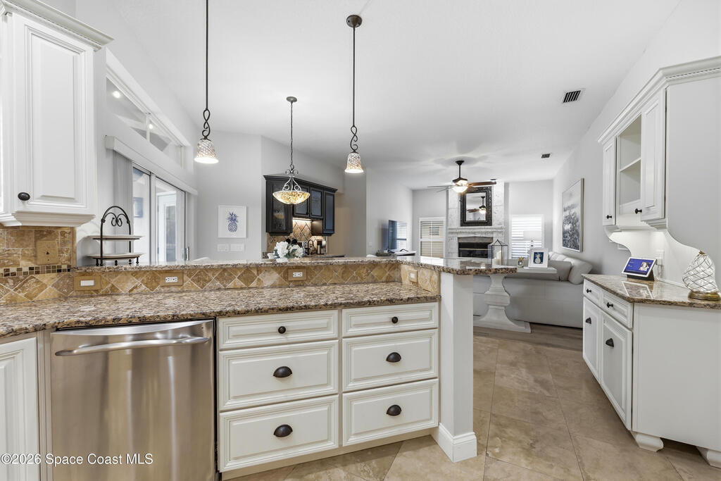 This beautifully maintained 3-bedroom, 2-bath home delivers the ideal Florida lifestyle with timeless curb appeal, an inviting arched entry, and a three-car garage. Inside, you'll find a bright, open layout with neutral finishes, upgraded lighting, and spacious living areas designed for both everyday comfort and entertaining.The kitchen features white cabinetry, granite countertops, stainless appliances, and a designer tile backsplash, plus a large window overlooking the backyard retreat. The main living space is anchored by a striking fireplace and enhanced by a built-in bar/serving station. Step outside to your private oasis-- a screen-enclosed pool with paver deck and covered lanai with a warm wood ceiling, ceiling fans, and cafe lighting for year-round enjoyment. The primary suite impresses with a spa-inspired bath including a freestanding soaking tub, frameless glass shower, and an incredible custom walk-in closet A rare combination of space, style, and outdoor living.
