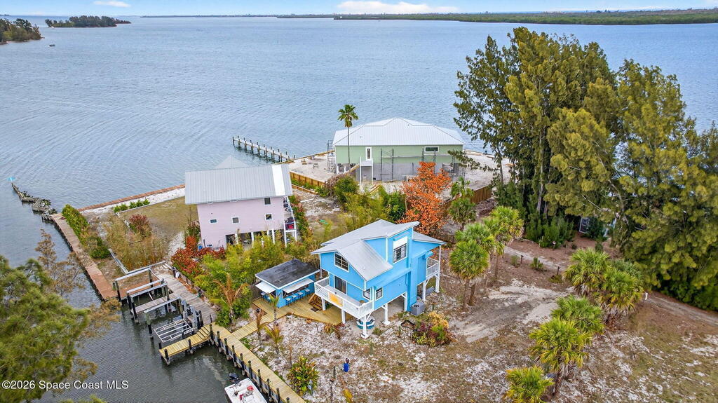 Peace and serenity await you at your Private Island get-away. Located in Brevard County surrounded by water. The house boasts high ceilings with a loft. Kitchen has granite countertops, appliances and wood floors. The house has multiple balconies to enjoy the sunrise, sunsets and the great river views. Whether its your primary residence or vacation retreat, you'll love it just the same. The ground floor has a private guest quarter with a full bathroom. Recent upgrades include a private dock 50 ft seawall and walkway. The adjacent lot can be purchased with the house for a discounted price. The lot also has a new dock and walkway with 50 ft of seawall ( tax Id 5956759) .15 acre. Just minutes from Sebastian Inlet makes this home a fisherman's dream. Boat access only