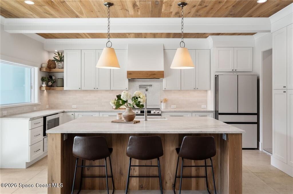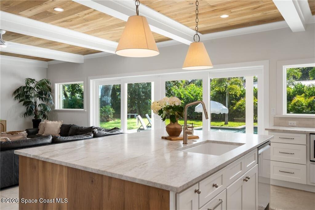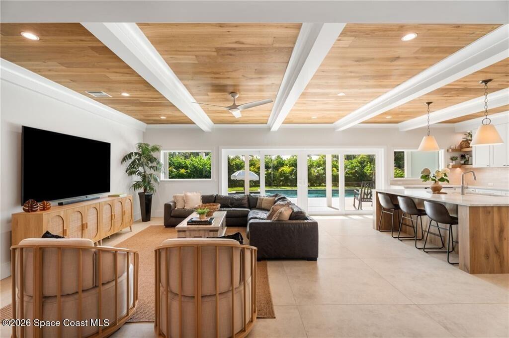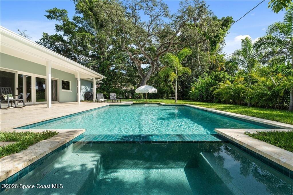 Effective age built 2020! Completely reinvented CBS masterpiece nestled between the Indian River & Atlantic Ocean. Design led custom finishes & architectural details, every inch thoughtfully designed & engineered to perfection. Oversized lot(.33) w/ lush landscaping and mature oaks. This 4 bed/3 bath, 3,364 sq ft home split/open floor plan w/ tons of storage. Features include: 25' custom resort-style pool & spa, 22' roof, spray foam ins., impact windows/doors, fenced in backyard, all new electric, plumbing, & Step system. A/C 22', 25' irrigation system. No HOA/take your boat to the marina!