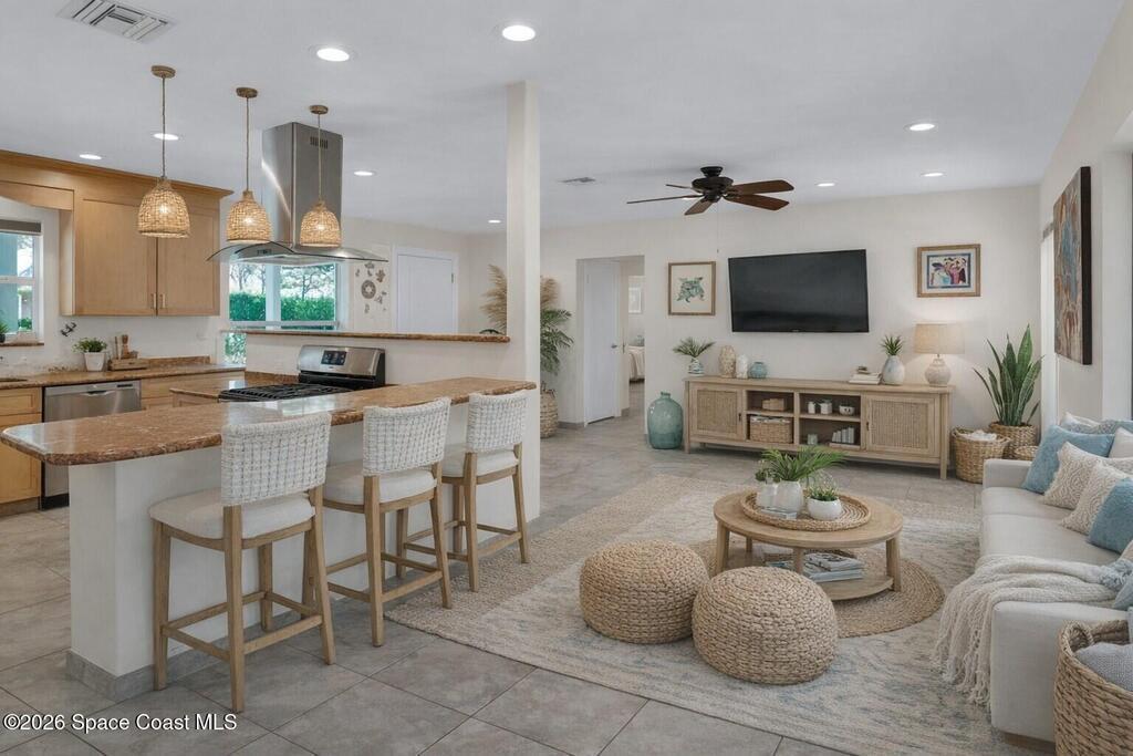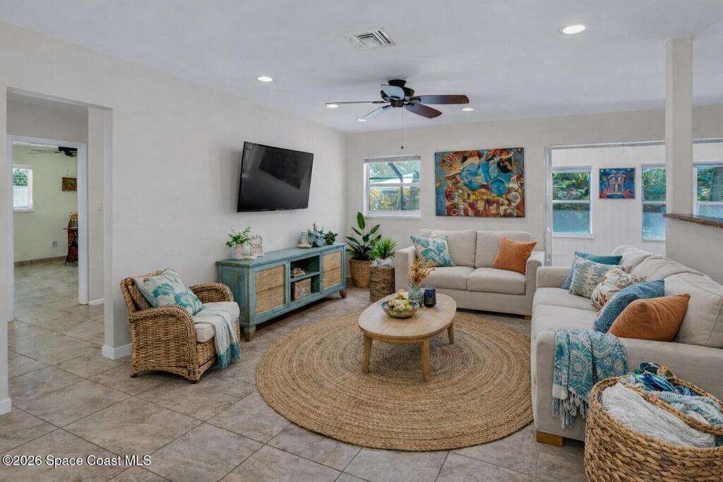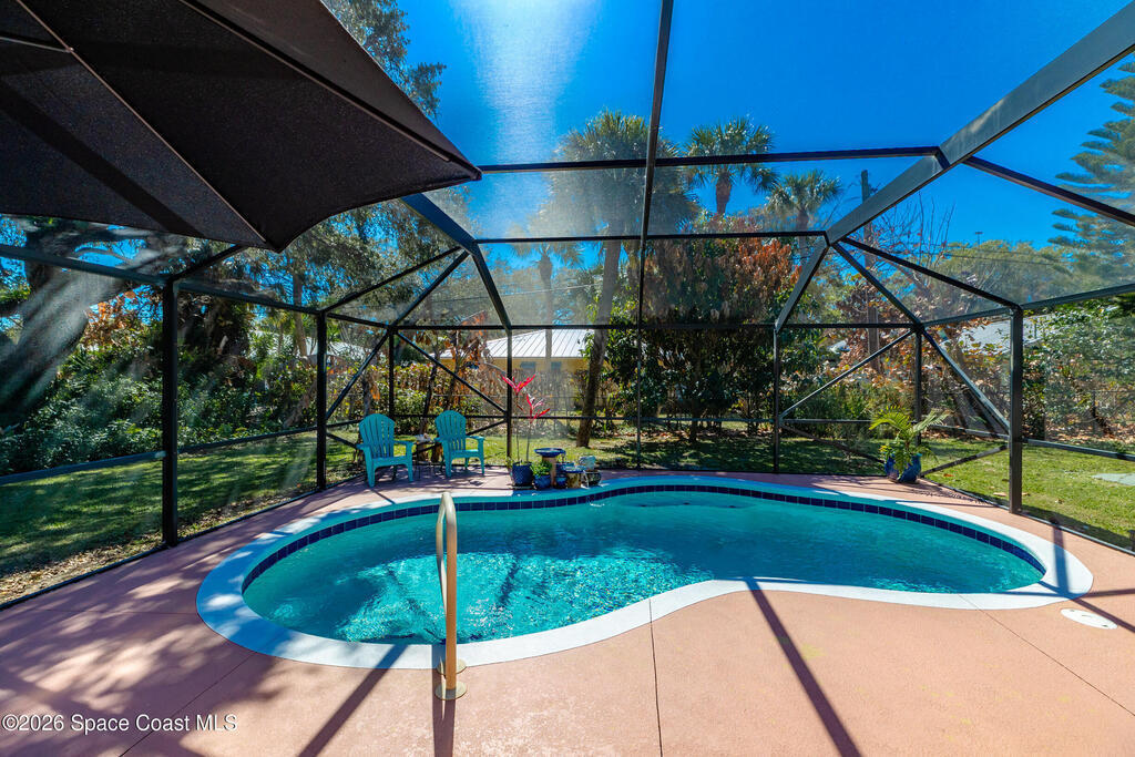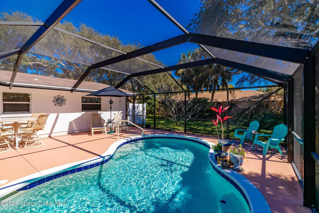 Dreamy beachside bungalow east of A1A! This updated coastal retreat offers the ultimate in indoor-outdoor living w/heated+chilled screened-in pool--perfect for year-round enjoyment. Major upgrades provide peace of mind, including impact windows, '19 electrical panel, propane, City-STEP system conversion, '24 A/C w/UV & 8-yr warranty, fenced yard & 30-amp RV plug--bring the toys. Whether you're looking for a full-time residence or the perfect beach getaway, this home delivers location, lifestyle, & thoughtful improvements throughout. Opportunities east of A1A don't wait--and neither should you.
