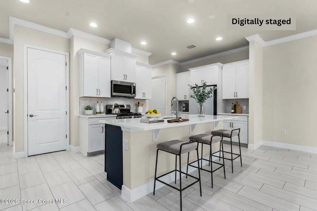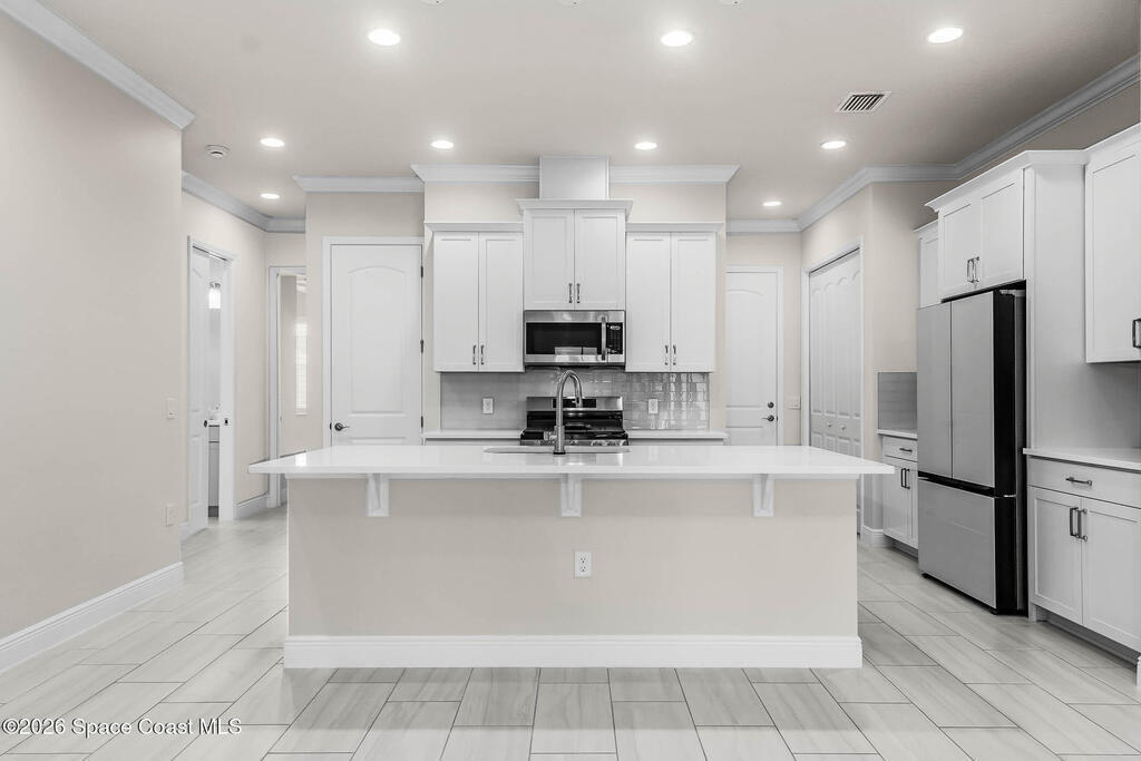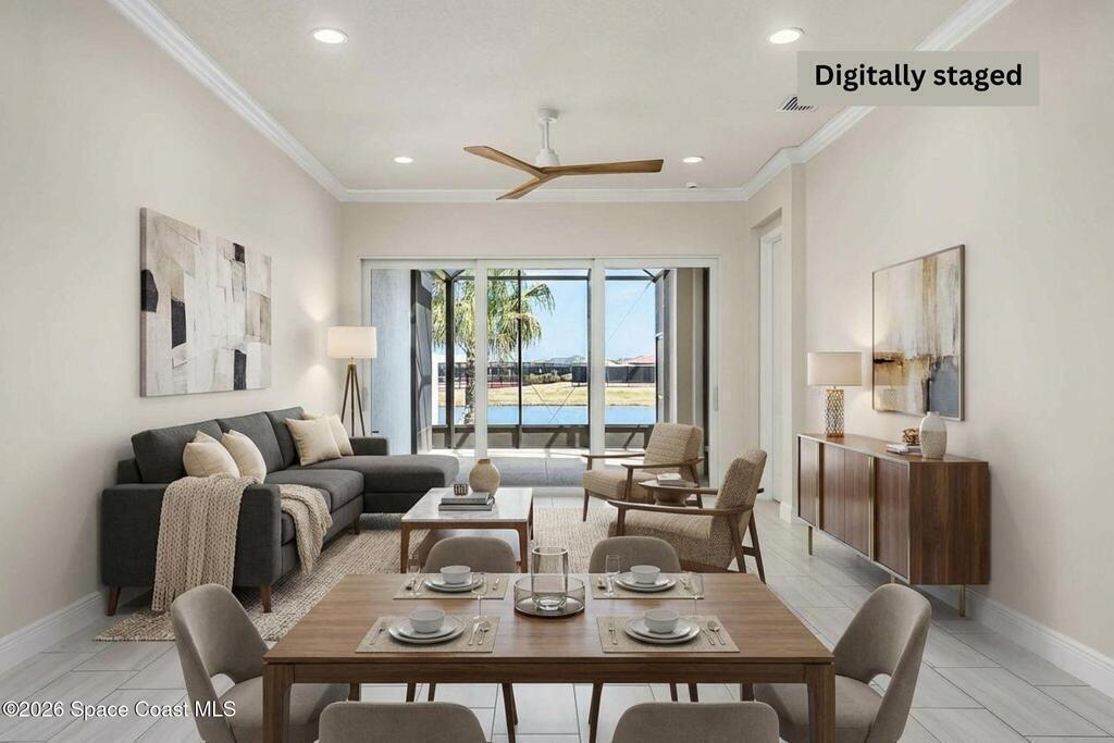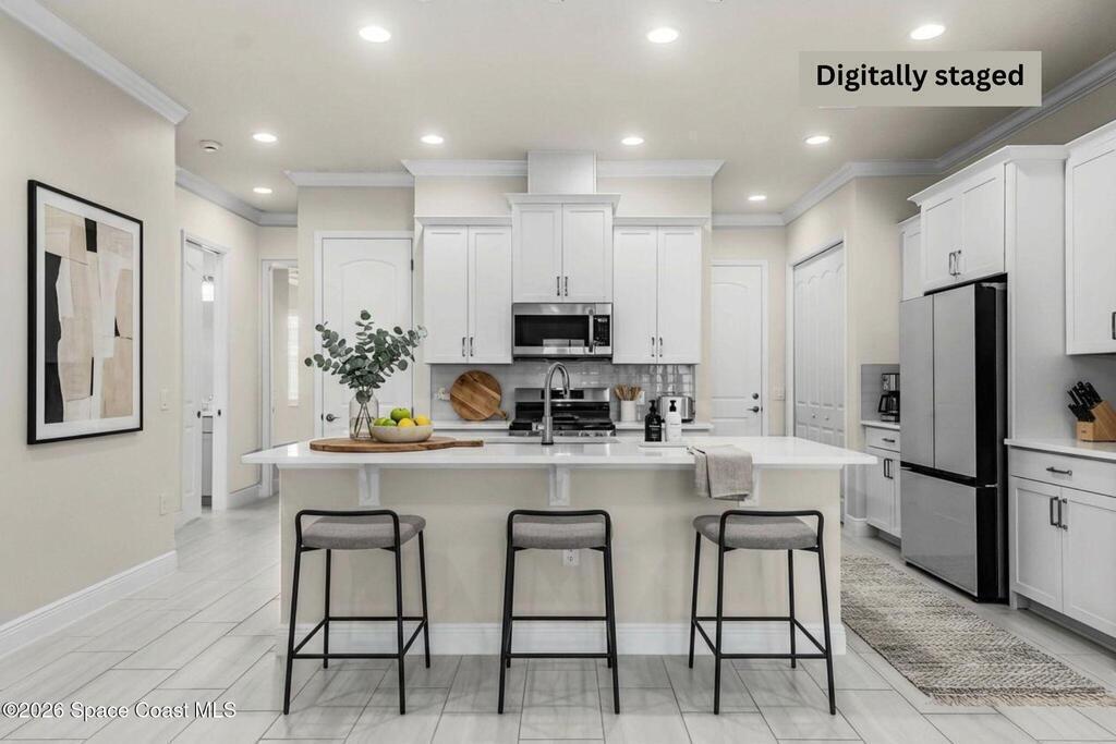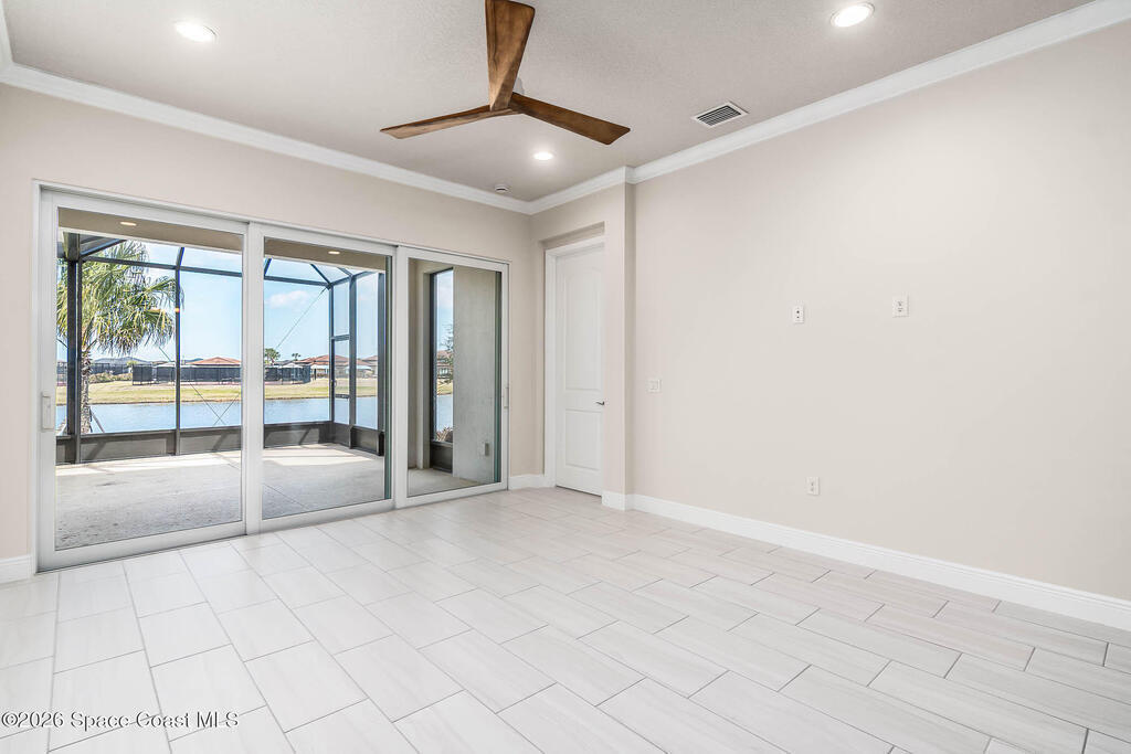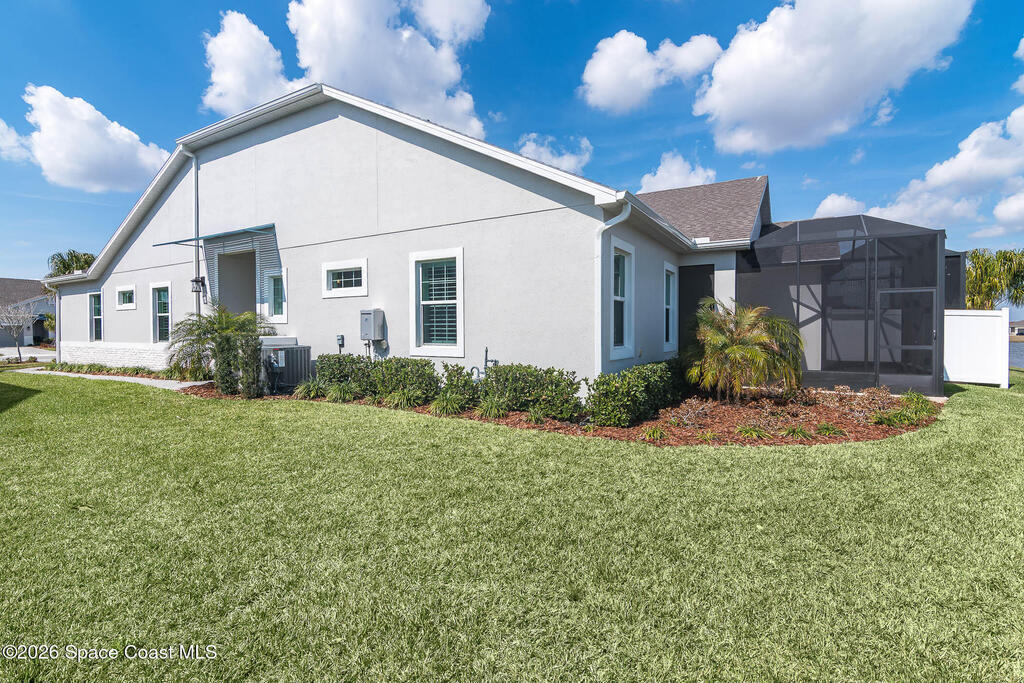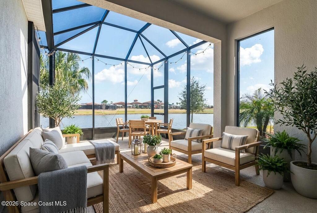 Limited-time offer: seller contributing 3% toward buyer's closing costs! Positioned on a premium pie-shaped lakefront lot w/ privacy & a long driveway that accommodates many cars, this move-in-ready gem shines w/ $50K in thoughtful upgrades incl. all impact windows & tile floors throughout, even all bdrms for a clean, cohesive look. The kitchen impresses w/ white cabinetry, a bold navy island, quartz surfaces, a sleek counter-depth refrigerator, SS appliances & a gas range w/ griddle pan. The open layout flows effortlessly to the dining area & great room, where tranquil lake views are framed by sliding glass doors leading to the lanai & extended screened patio - ideal for outdoor entertaining. The light-filled primary ste offers a spacious bath w/ dual sinks, quartz counters, a large shower & a supersized walk-in closet. Thoughtfully designed, beautifully finished & includes washer & dryer. Resort-style amenities, A+ Schools, 15 min. from the beach, 6 min.- Costco & 3 min.- Publix.