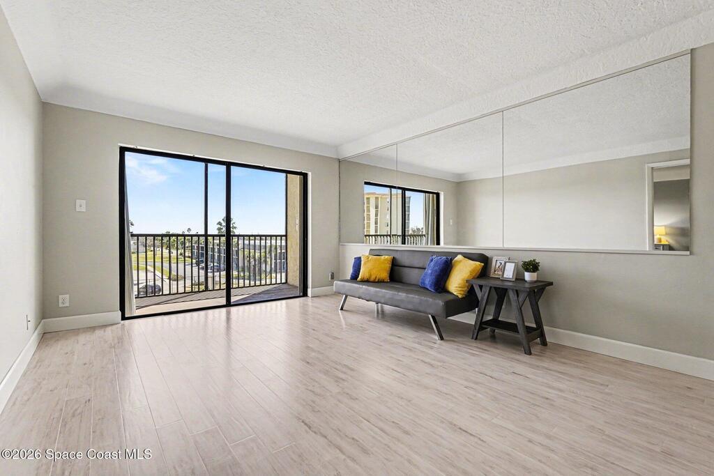 Welcome to easy beachside living at 500 Palm Springs Blvd #403 in Indian Harbour Beach. This beautifully renovated 2-bedroom, 1.5-bath condo offers comfort, style, and convenience in one of Brevard County's most desirable coastal communities. Inside, you'll find luxury vinyl plank flooring throughout, along with an updated kitchen and refreshed baths that create a clean, modern feel. Step onto your private balcony overlooking the community pool and pickleball and tennis courts--perfect for morning coffee or relaxing evenings. The unit includes a stackable washer and dryer, plus you have access to a same-floor community laundry room. An assigned covered parking space and separate storage closet provide added convenience. HOA fees cover water, sewer, trash, pest control, exterior maintenance, and internet with three cable boxes. Located within walking distance to the beach, restaurants, bars, and shopping, this condo offers the relaxed coastal lifestyle so many are looking for.