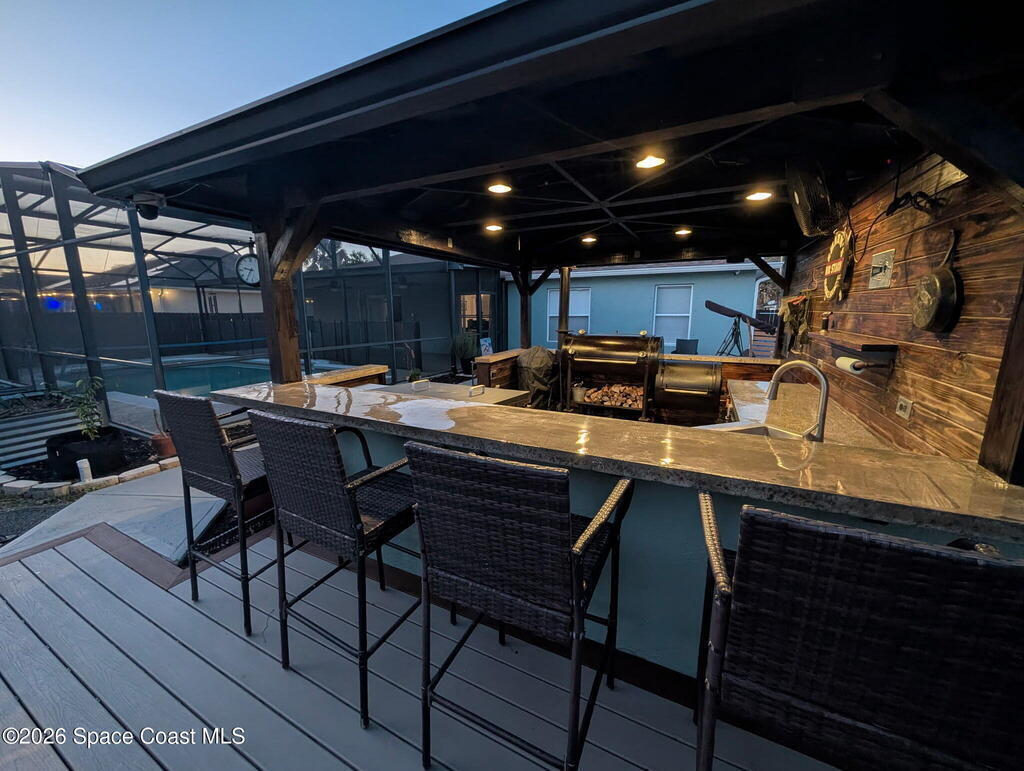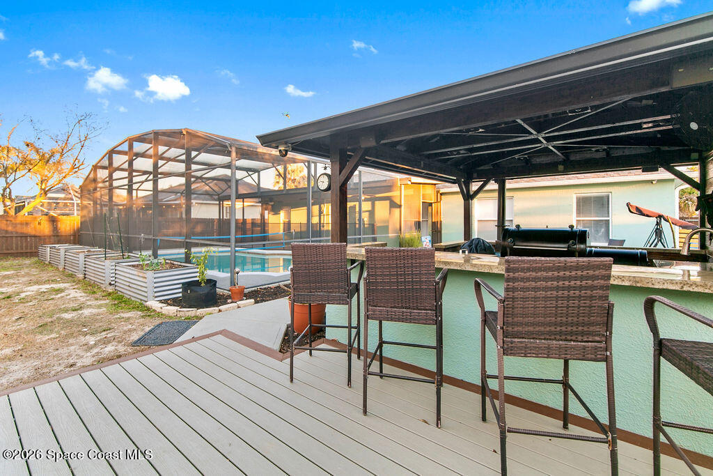 This 3-bedroom, 2-bath pool home is truly what dreams are made of! Every corner thoughtfully designed for comfort, style, and unforgettable gatherings.Step out back and prepare to fall in love. The backyard is the ultimate showstopper, an entertainer's paradise that feels like your very own private resort. Fire up the grill in your amazing outdoor kitchen, lounge under the Florida sunshine, or unwind in the beautiful screened-in pool that begs for cannonballs, night swims, and weekend hangouts.The spacious, stone-accented patio offers the perfect spot for a firepit or a cozy outdoor living space. And for the green thumbs-get excited,because the property features huge galvanized garden beds, ready to bring your homegrown dreams to life.Inside, the fun continues. The spacious kitchen was crafted for the true host at heart, featuring an oversized island equipped with two dedicated 20-amp circuits, plus under-cabinet lighting that adds the perfect ambiance for cooking or entertaining!