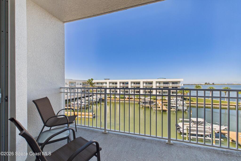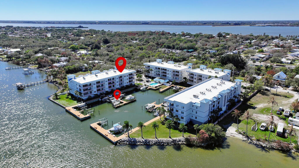 WATERFRONT CONDO WITH YOUR OWN PRIVATE BOAT SLIP!! This awesome riverfront condo is a dream come true with breath taking views of the Banana River , 3 bedrooms, 3 baths, pool, boat slip #12 with lift. Private gated community. This condo is ready to move in and began your fun with your boat and views of the water. 3 bedrooms with walk in closets. Master has it's own sliding glass doors to the balcony. 2 Parking spaces #302 and Storage Closet in the garage. See the Space Launches and Cruise Ships from your Balcony!!