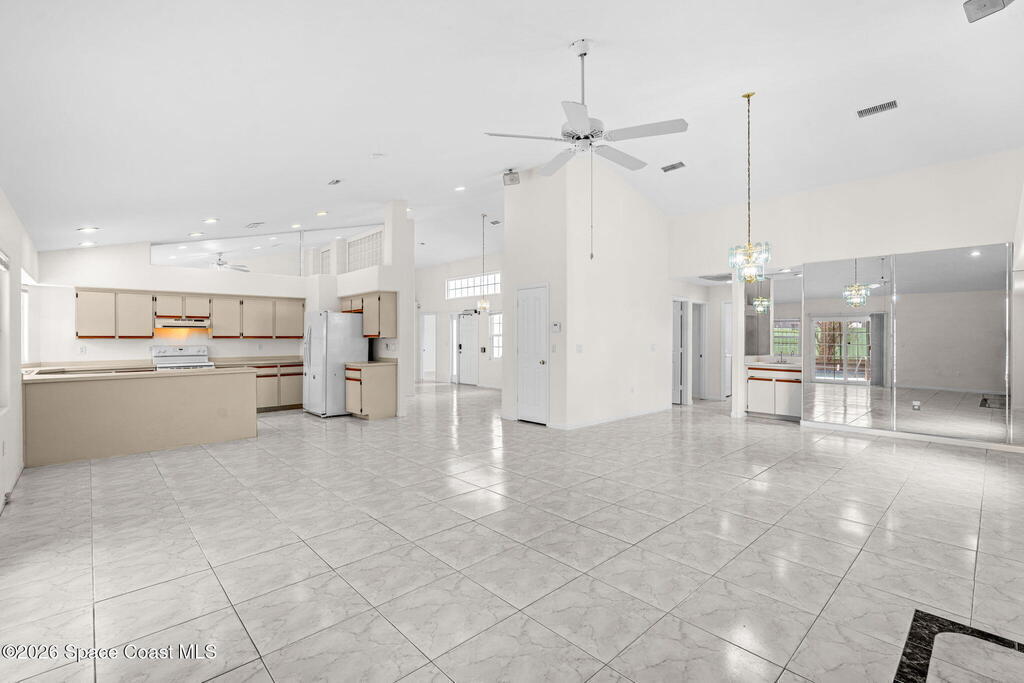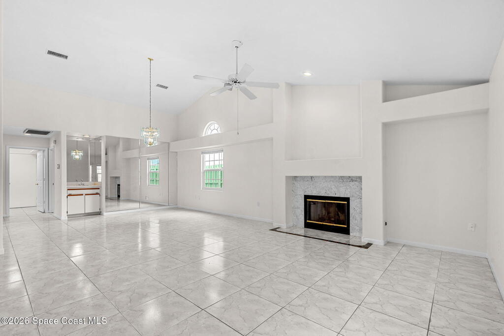 Live the Cocoa Beach lifestyle on an oversized .24 acre homesite just steps from Lori Wilson Park and the Atlantic shoreline. This 3 bedroom, 2 bathroom pool home offers bright, open living with soaring cathedral ceilings, a spacious great room, and a cozy wood burning fireplace. The kitchen features abundant cabinet and counter space with views of the screened pool, creating an ideal flow for everyday living and entertaining. The generous primary suite includes a huge walk in closet and a well appointed bath with dual sinks, garden tub, separate shower, and private water closet. Tile flooring runs throughout, and brand new interior and exterior paint give the home a fresh coastal feel. Major updates include a 2021 roof, newer windows and sliders, no cast iron plumbing, and interior laundry. Outside, enjoy a large fenced yard, screened pool, and rare three car garage. No HOA allows short term rental flexibility, all within walking distance to the beach, gym, dining, & local favorites.