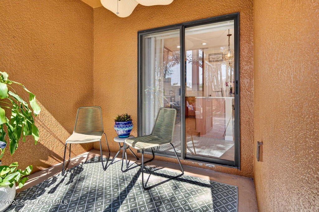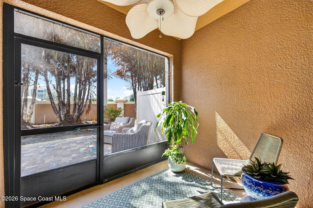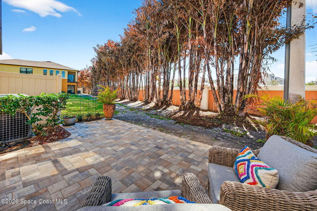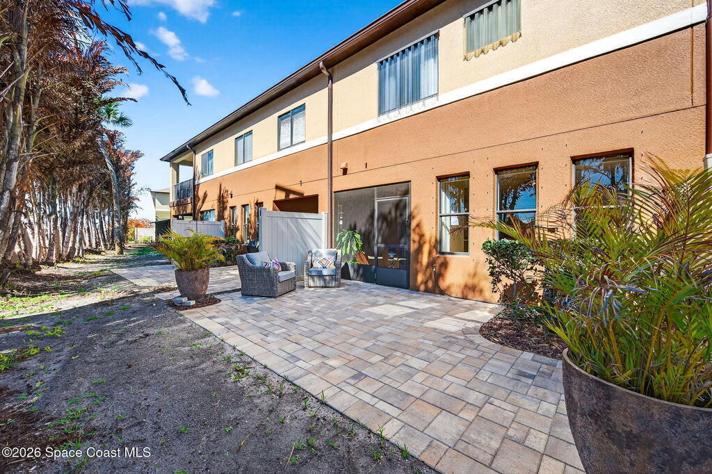 TURN-KEY 2 bed, 2.5 bath condo in Meadow Pointe of Rockledge--MOVE IN READY and centrally located! This open floor plan features a chef's kitchen with quartz countertops, solid wood cabinetry, and stainless steel appliances. Custom drapes add warmth and style. Furnishings negotiable. The spacious 19x13 primary suite offers a walk-in closet and updated ensuite with quartz counters and a tiled walk-in shower with stone accents. The secondary bedroom is also an ensuite with a walk-in closet. Enjoy the screened patio with extended pavers ideal for relaxing or entertaining. Storm shutters and a 1-car attached garage included. HOA covers cable/internet, trash, lawn care, landscaping, roof replacement, community pool, and master insurance. Minutes to I-95, US-1, shopping, dining, and 15 minutes to the beaches! Schedule your showings!