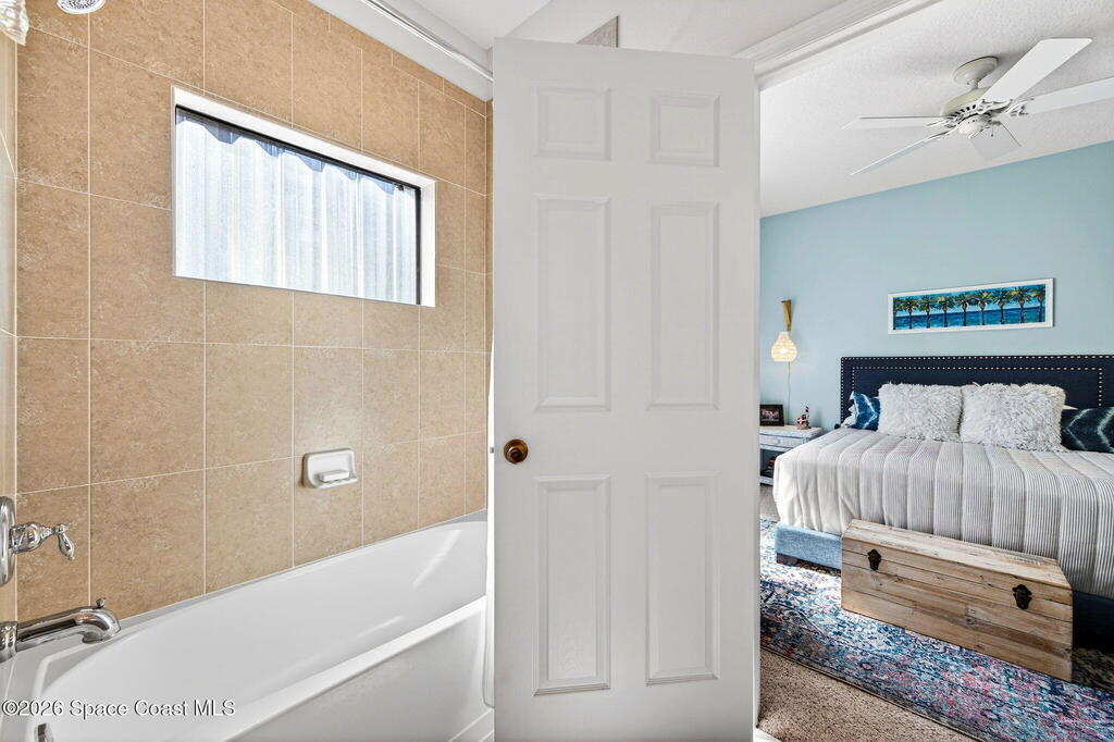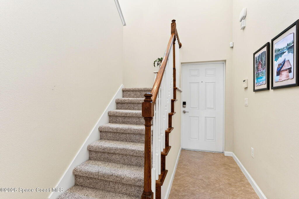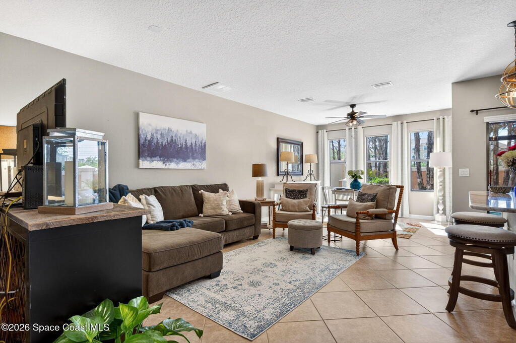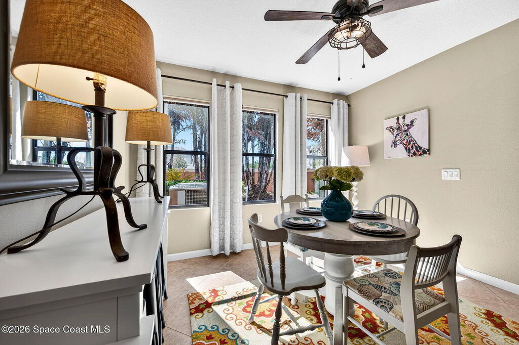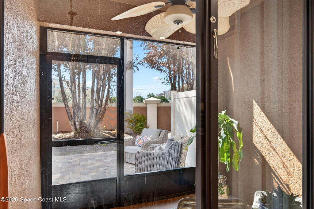 TURN-KEY 2 bed, 2.5 bath condo in Meadow Pointe of Rockledge--MOVE IN READY and centrally located! This open floor plan features a chef's kitchen with quartz countertops, solid wood cabinetry, and stainless steel appliances. Custom drapes add warmth and style. Furnishings negotiable. The spacious 19x13 primary suite offers a walk-in closet and updated ensuite with quartz counters and a tiled walk-in shower with stone accents. The secondary bedroom is also an ensuite with a walk-in closet. Enjoy the screened patio with extended pavers ideal for relaxing or entertaining. Storm shutters and a 1-car attached garage included. HOA covers cable/internet, trash, lawn care, landscaping, roof replacement, community pool, and master insurance. Minutes to I-95, US-1, shopping, dining, and 15 minutes to the beaches! Schedule your showings!